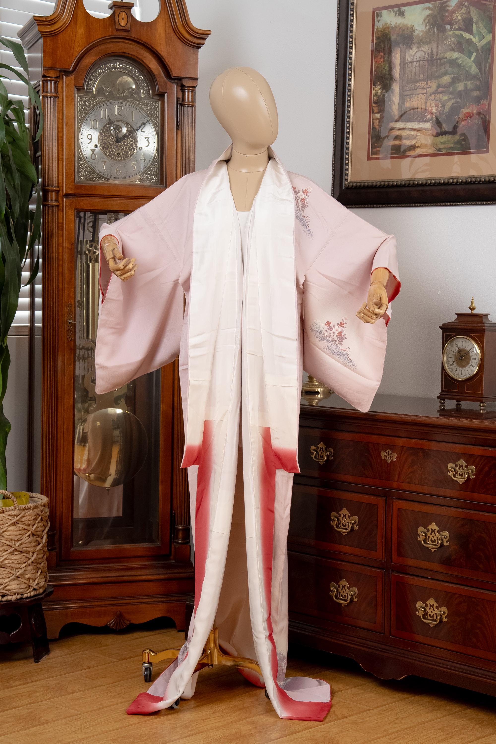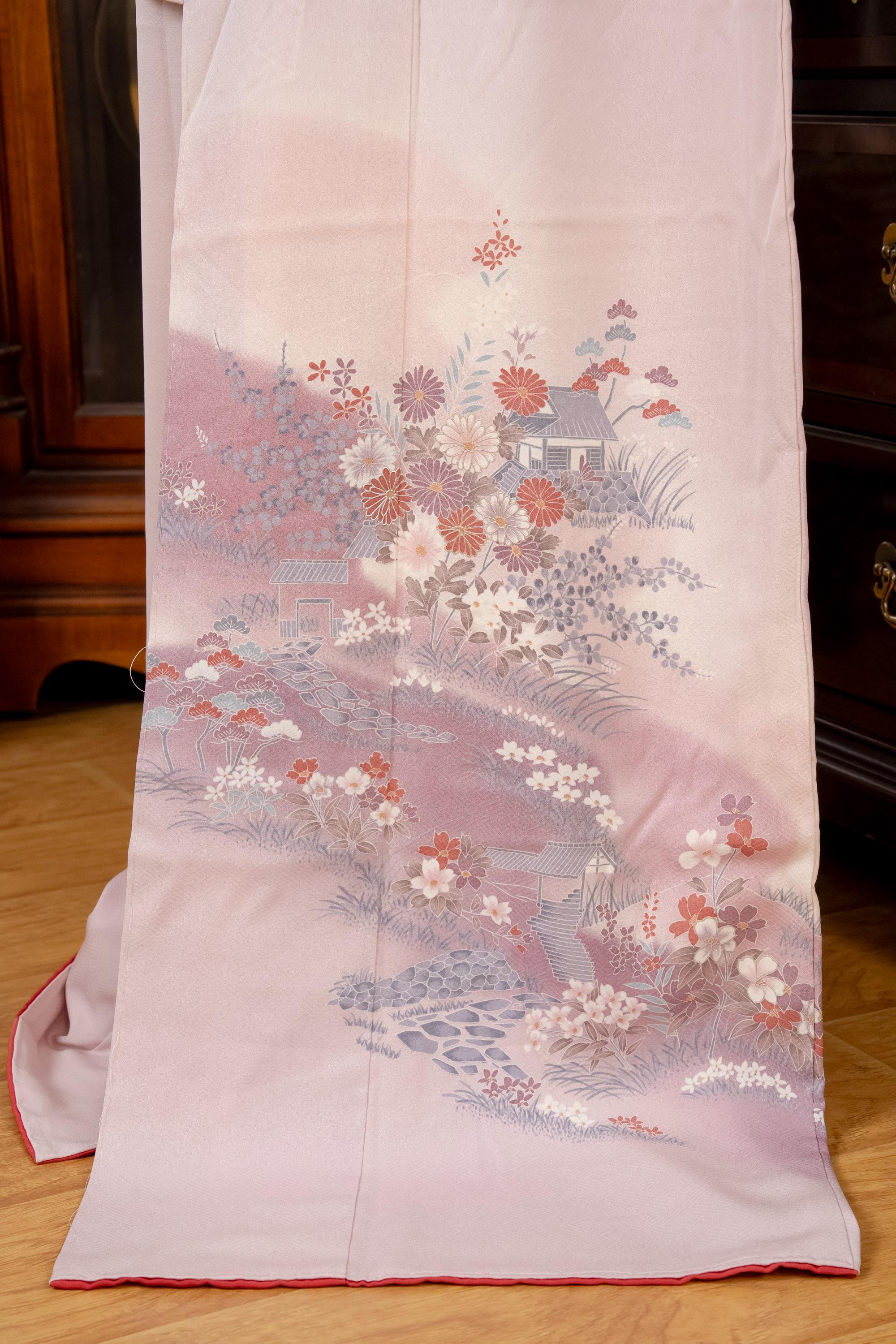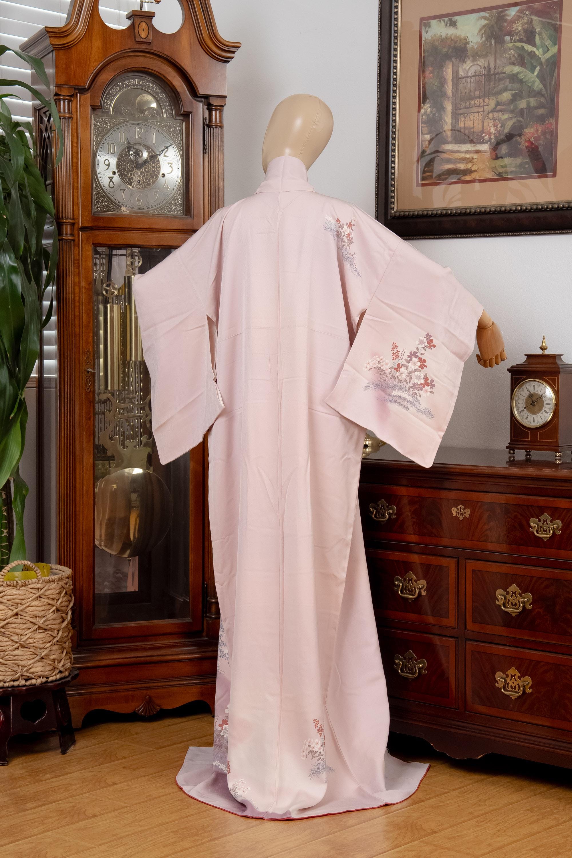 Please keep in mind that female Kimonos are supposed to fit long. You will need to adjust the length to your size by tying with Kitsuke accessories and Obi belt.