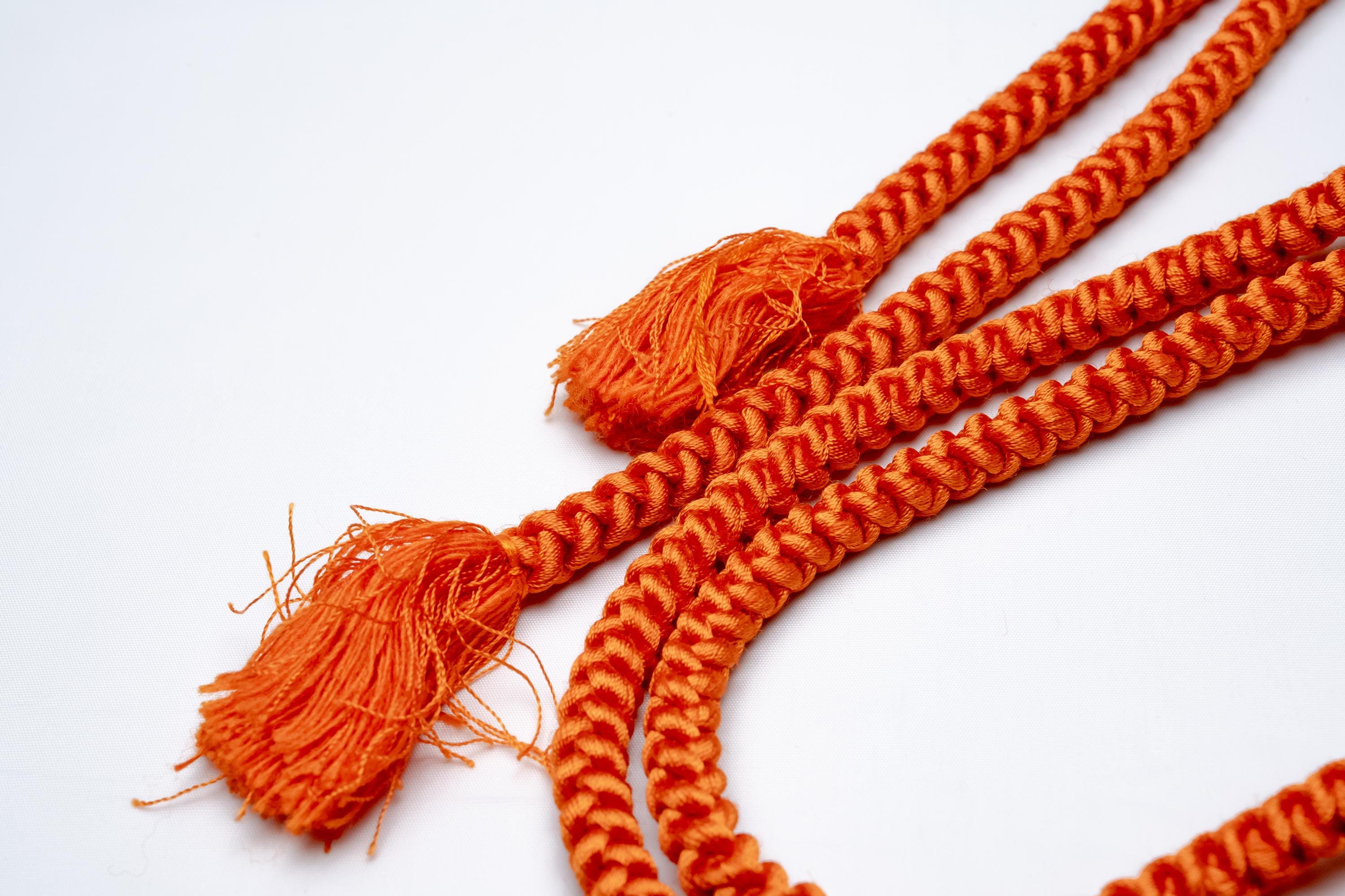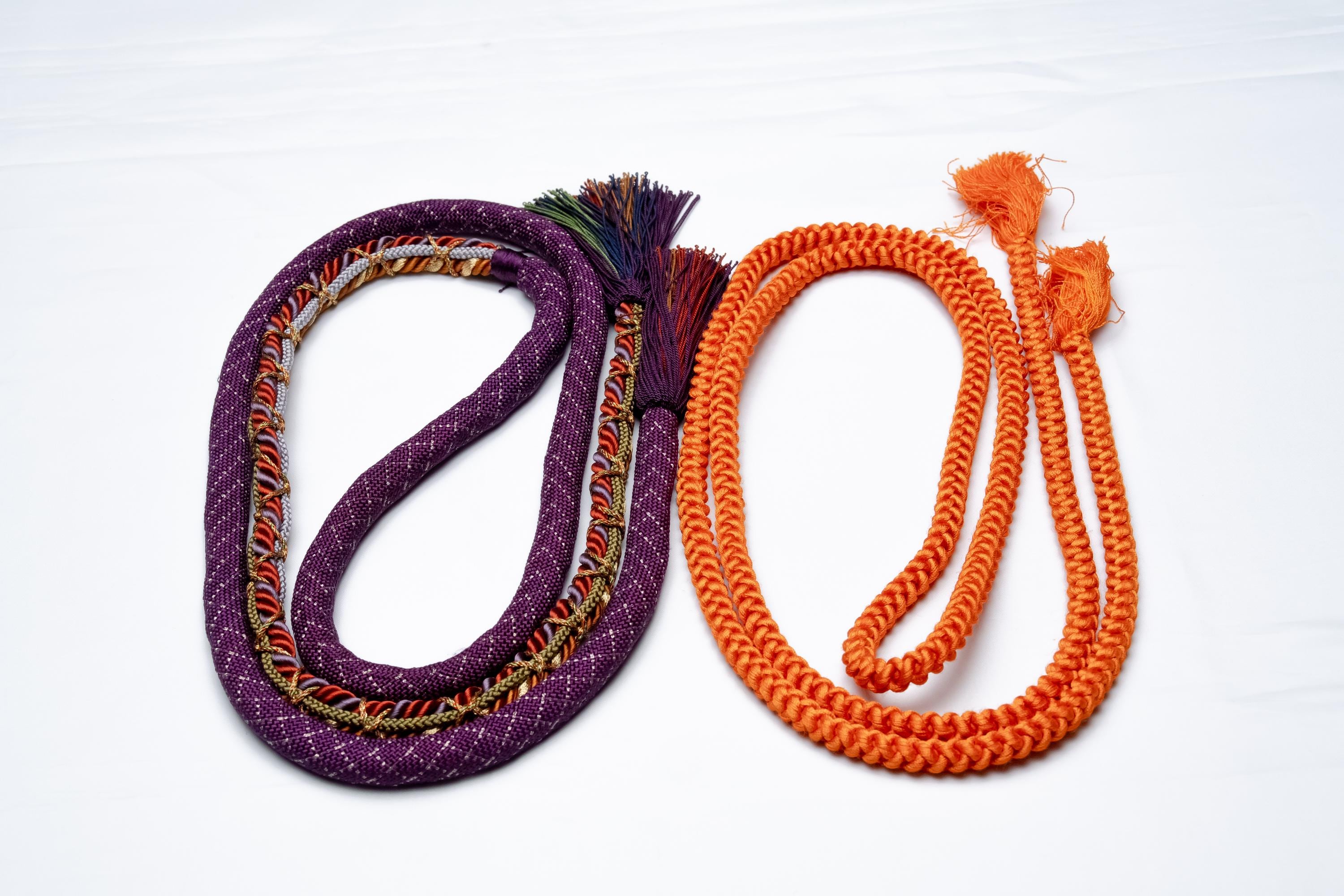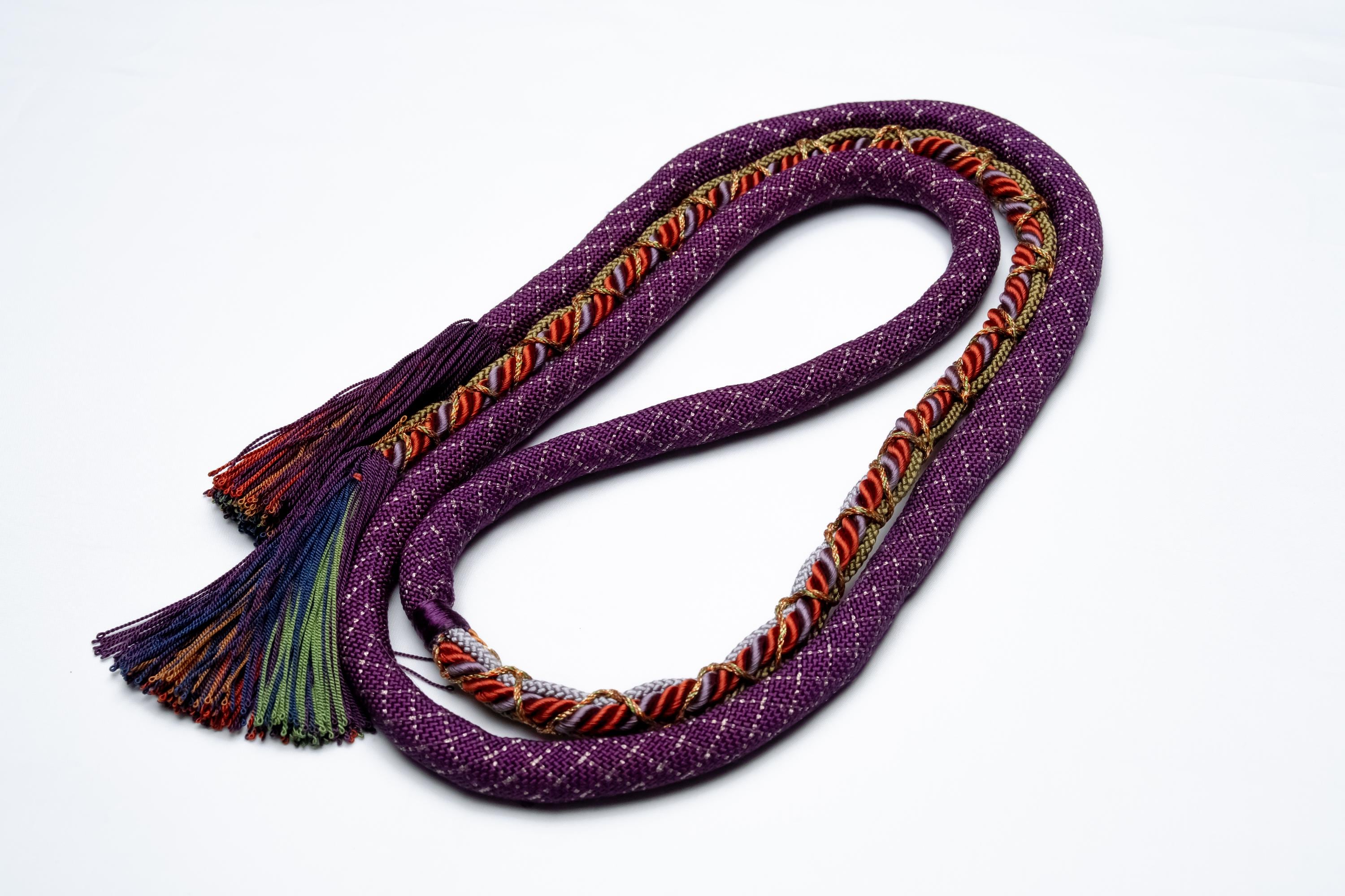 Obijime is one of the essentials in wearing women's Kimonos. Obijime is a fastener string used to hold Kimono Obi in place by tying over it. It's also called Obijime cord. Obijime can be found in different widths and lengths. In general, they are about 1 cm thick and are about 150 cm in length.