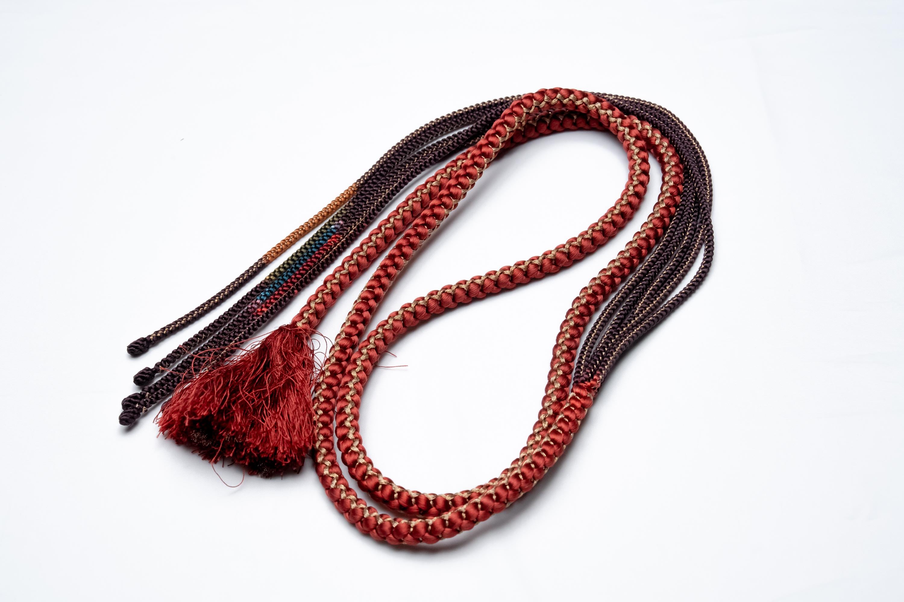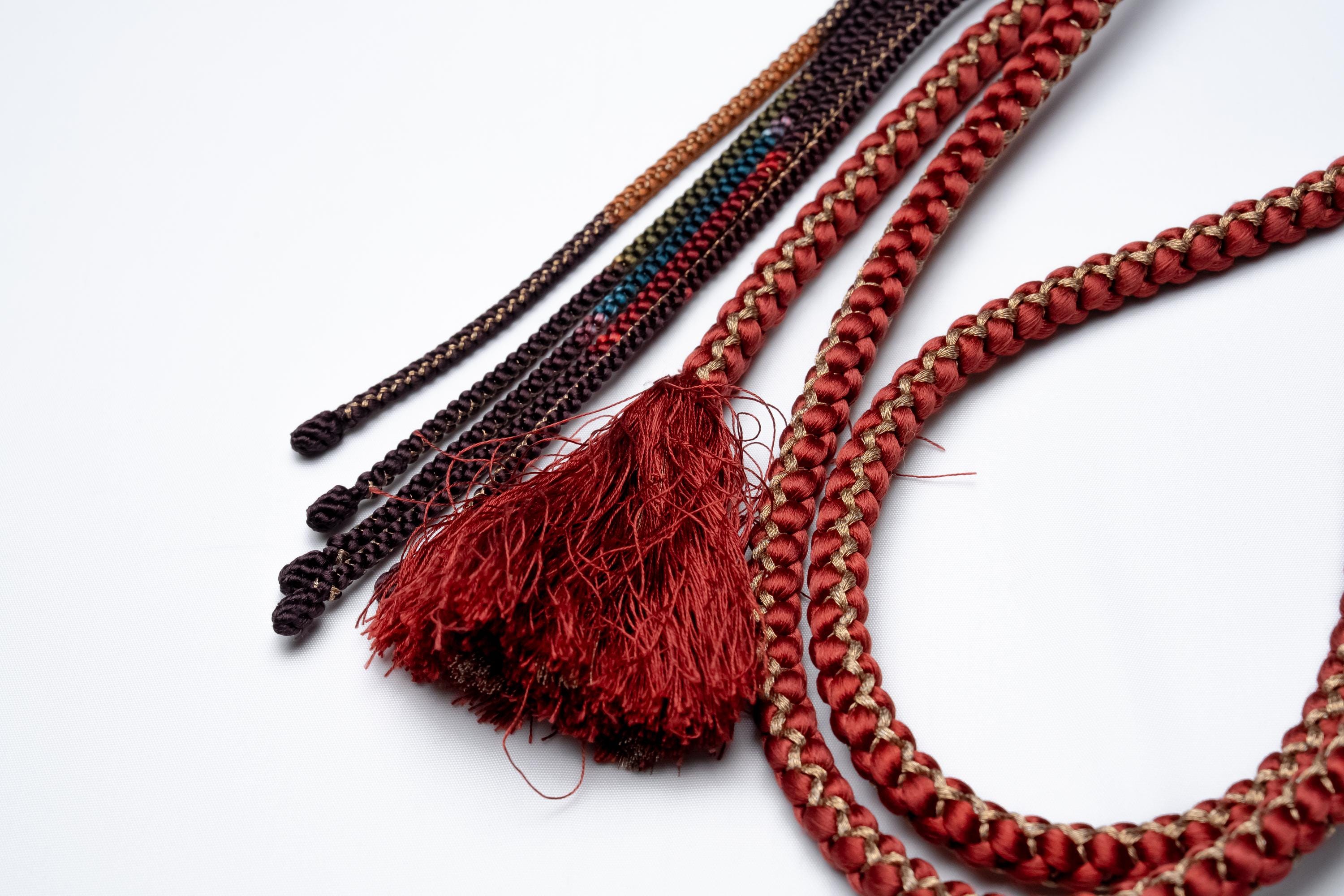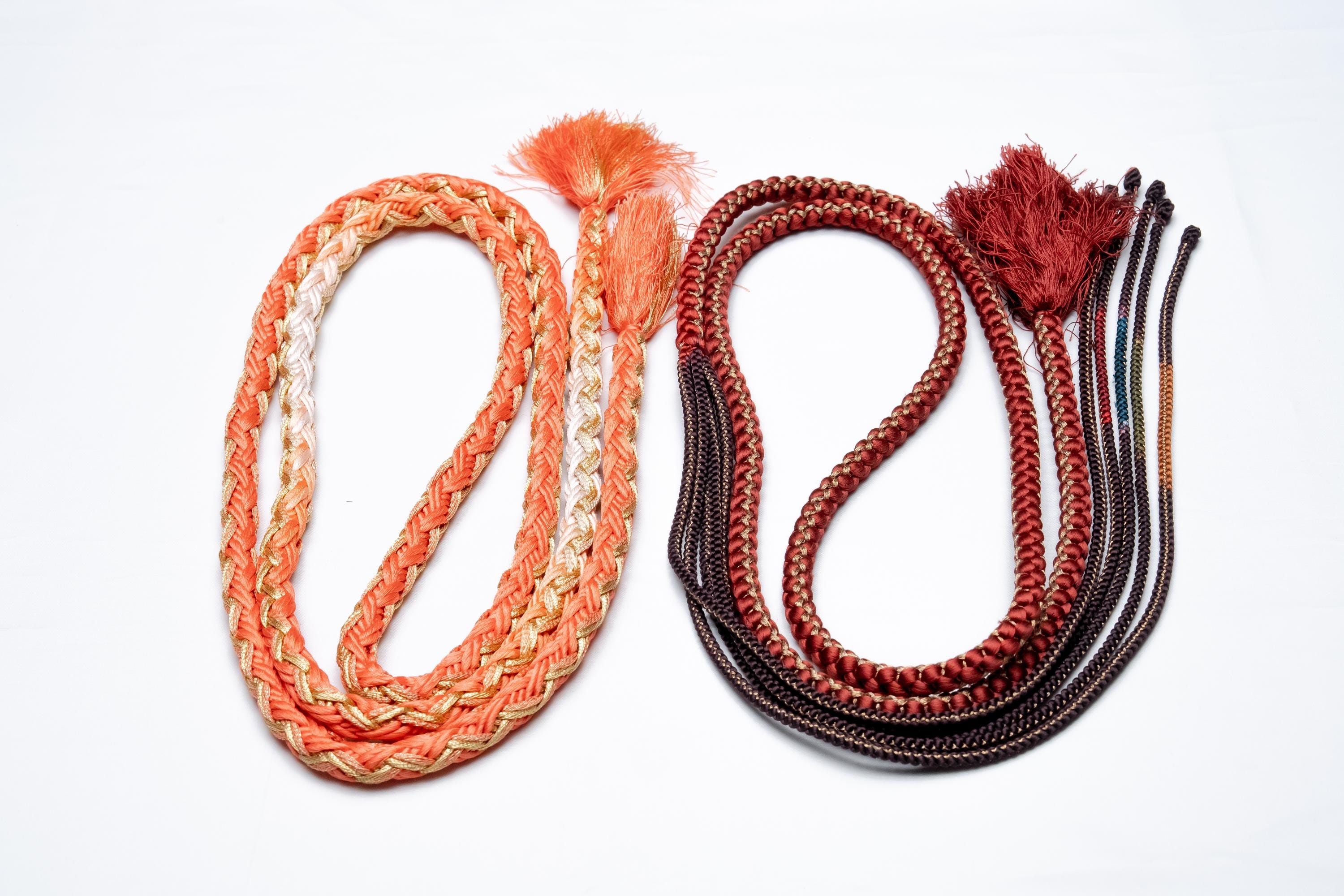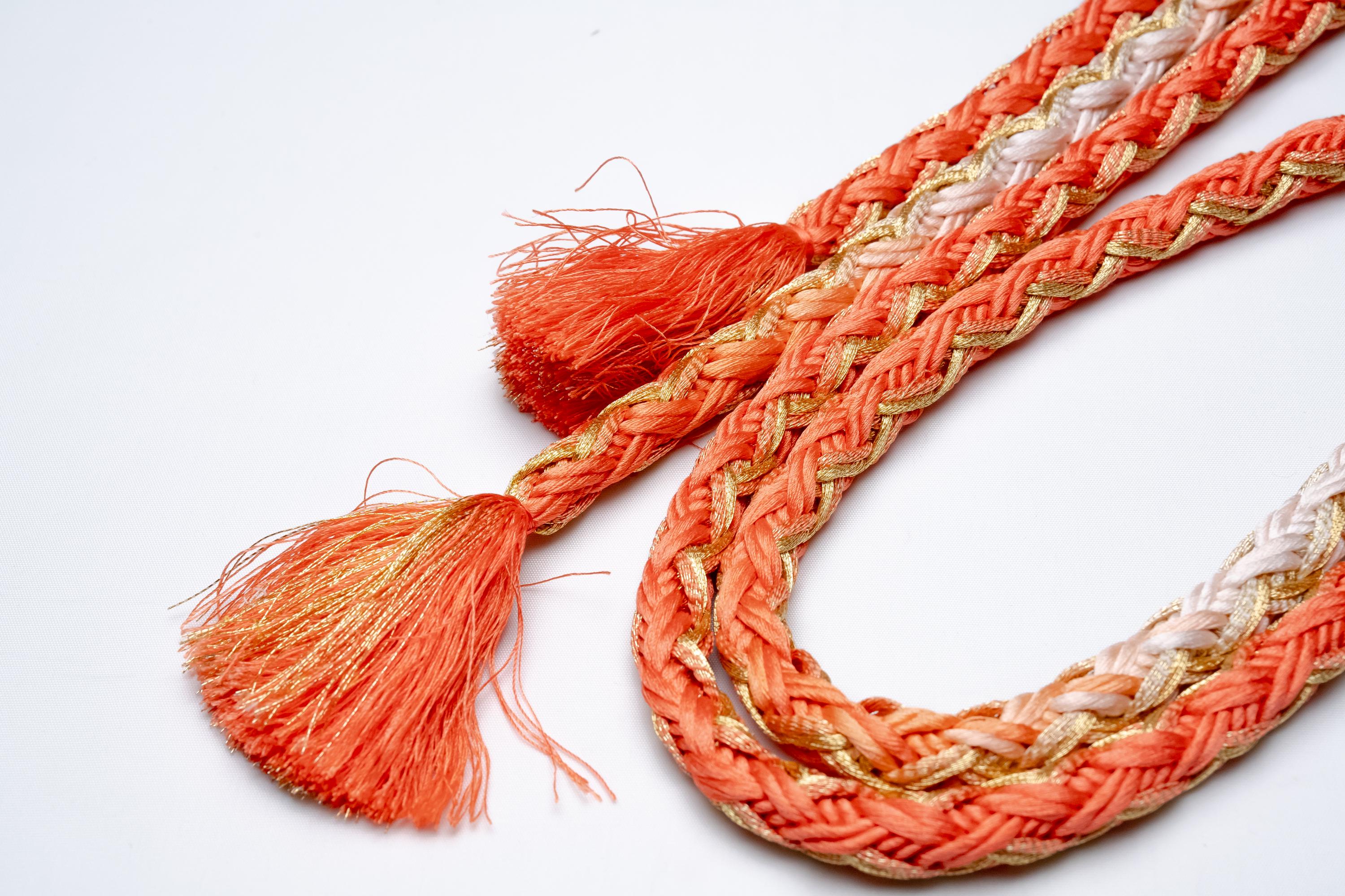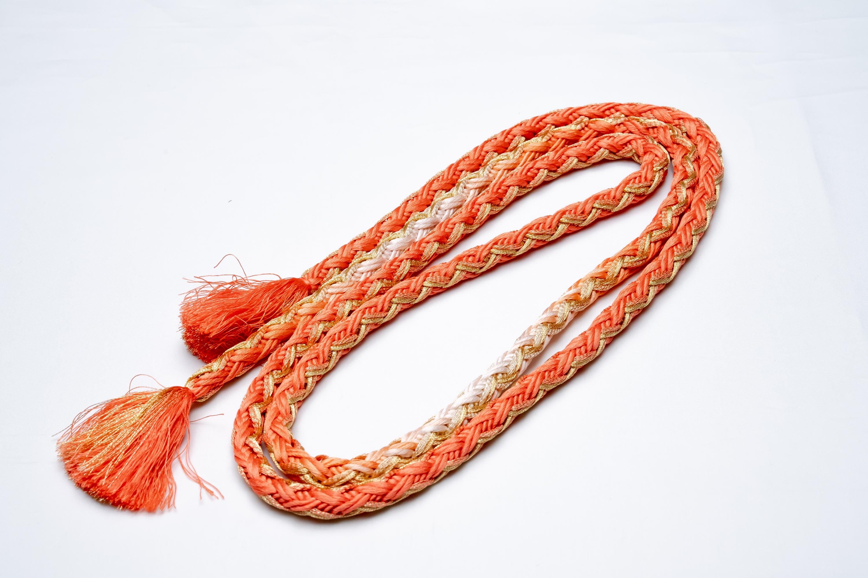 Obijime is one of the essentials in wearing women's Kimonos. Obijime is a fastener string used to hold Kimono Obi in place by tying over it. It's also called Obijime cord. Obijime can be found in different widths and lengths. In general, they are about 1 cm thick and are about 150 cm in length.