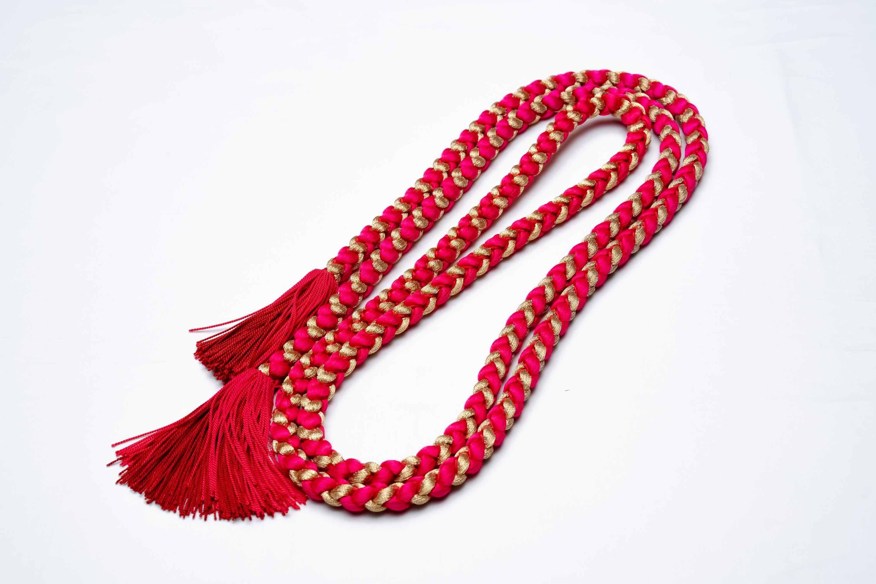 Obijime is one of the essentials in wearing women's Kimonos. Obijime is a fastener string used to hold Kimono Obi in place by tying over it. It's also called Obijime cord. Obijime can be found in different widths and lengths. In general, they are about 1 cm thick and are about 150 cm in length.