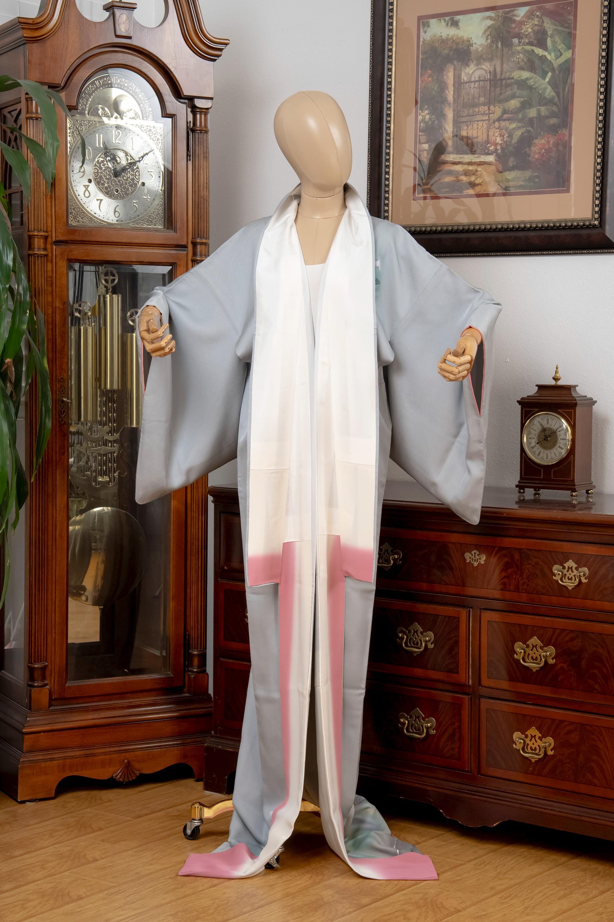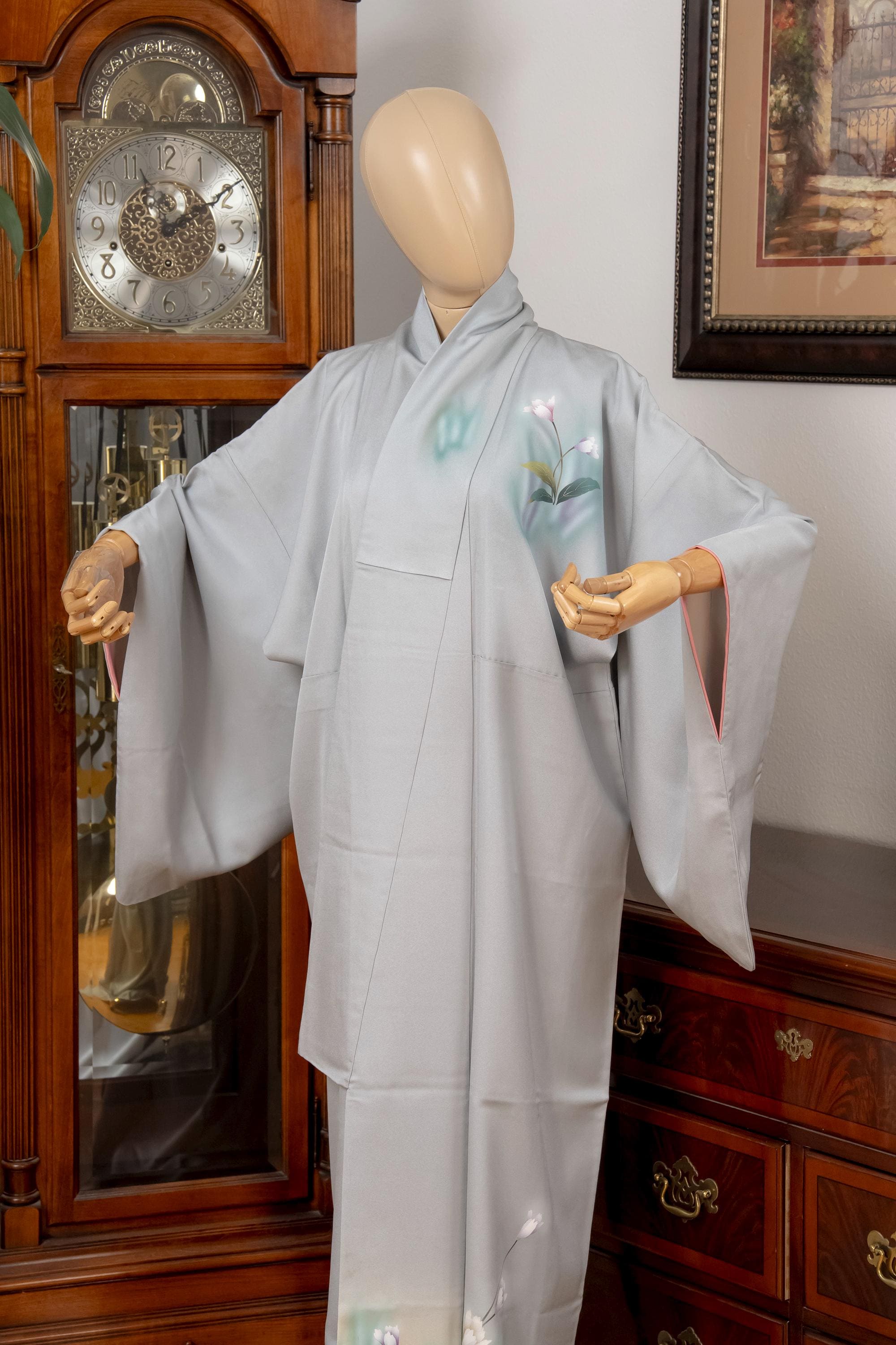 Please keep in mind that female Kimonos are supposed to fit longer. You will need to adjust the fit to your size with Kitsuke accessories and Obi belt.