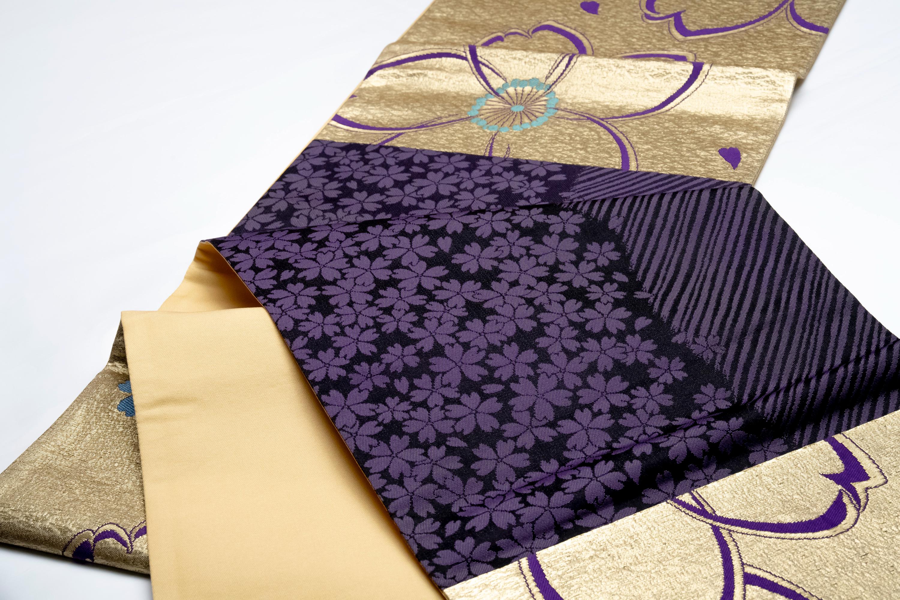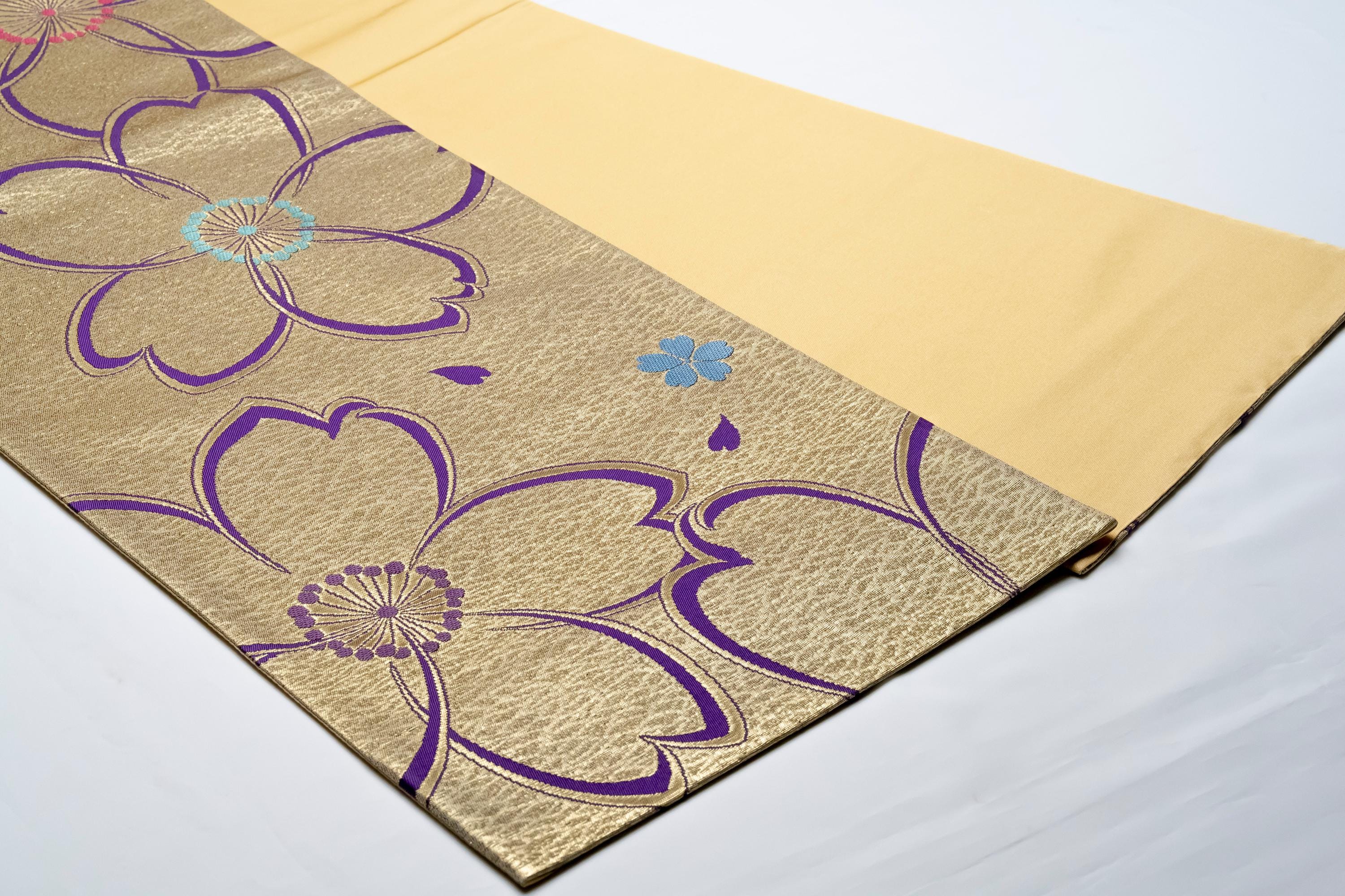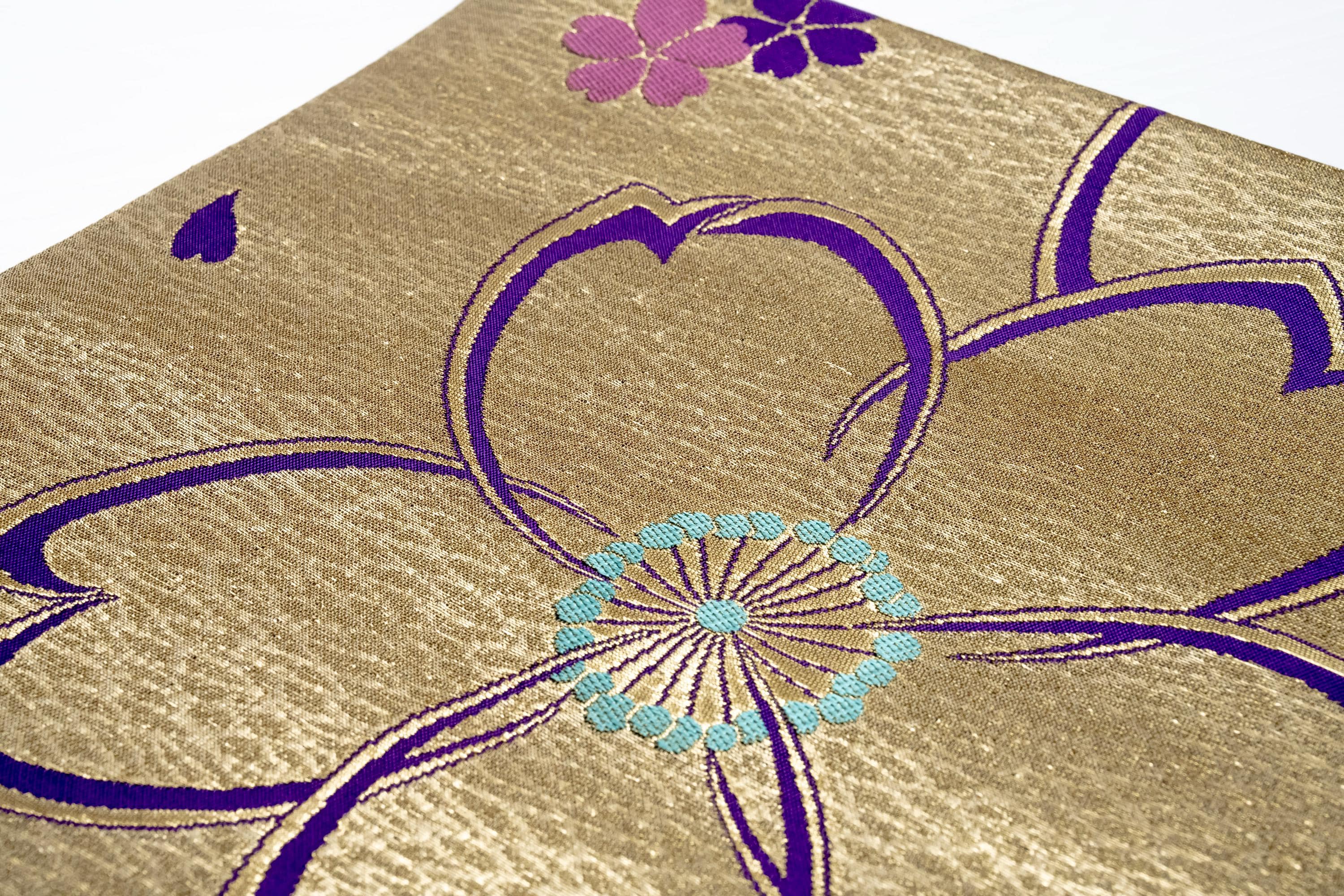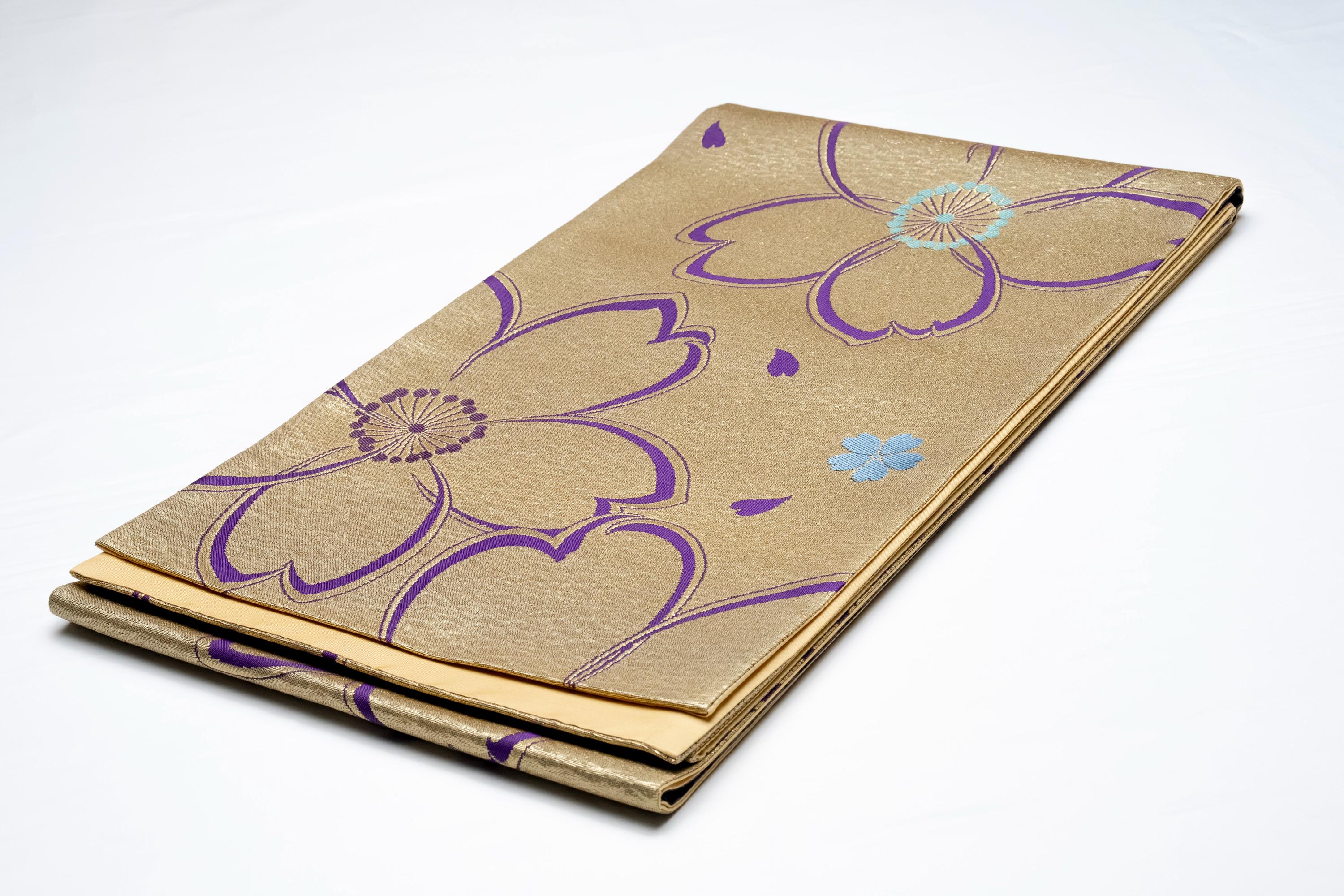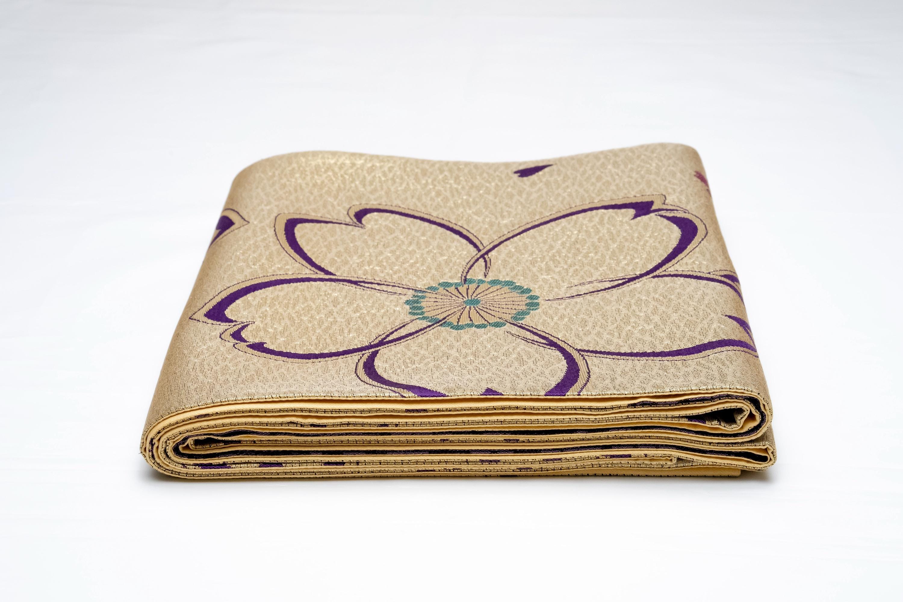 Fukuro Obi is a full-size sash belt that wraps around the torso in women's formal Kimono wearing. It is wider, longer and heavier than other informal Obis and serves the purpose of keeping the Kimono front closed securely, drawing up excess fabric to adjust the length of Kimono, and decorative expressions.