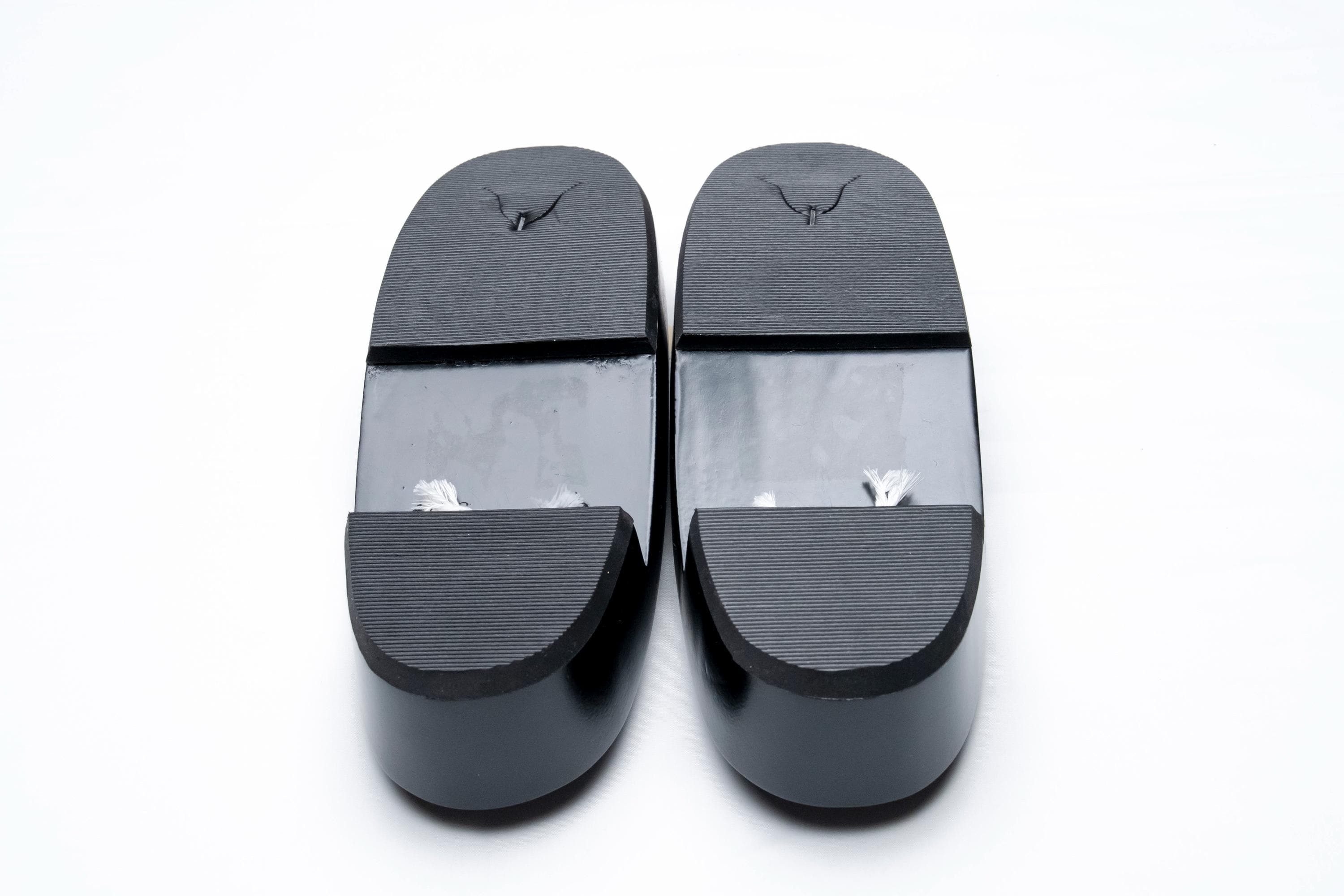 When you wear Zori with traditional Japanese formal Kimono, your heels should extend about one centimeter off the back of Zori. If your heels sit perfectly onto or shorter than the body of Zori, you might accidentally step onto the hem of your Kimono dress and/or splash mud/dirt on the back of dress.