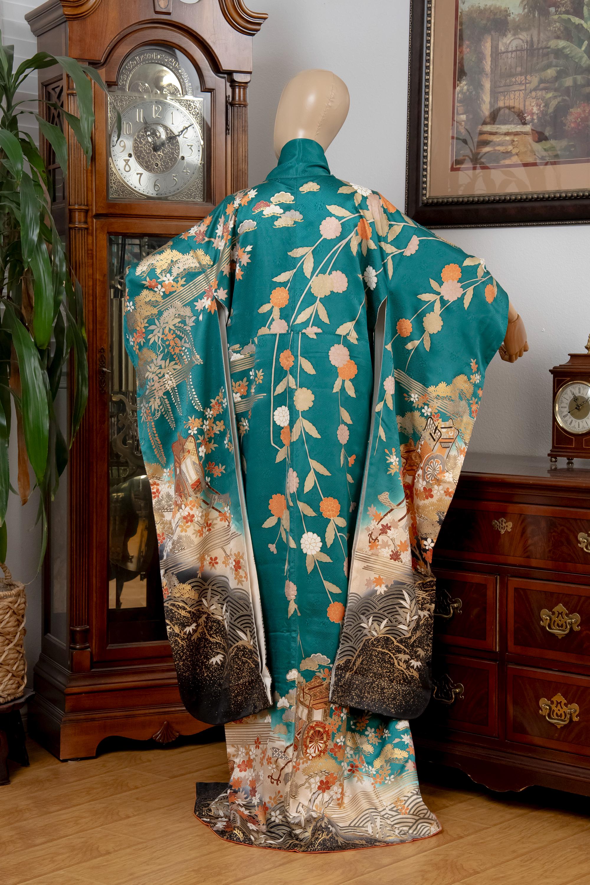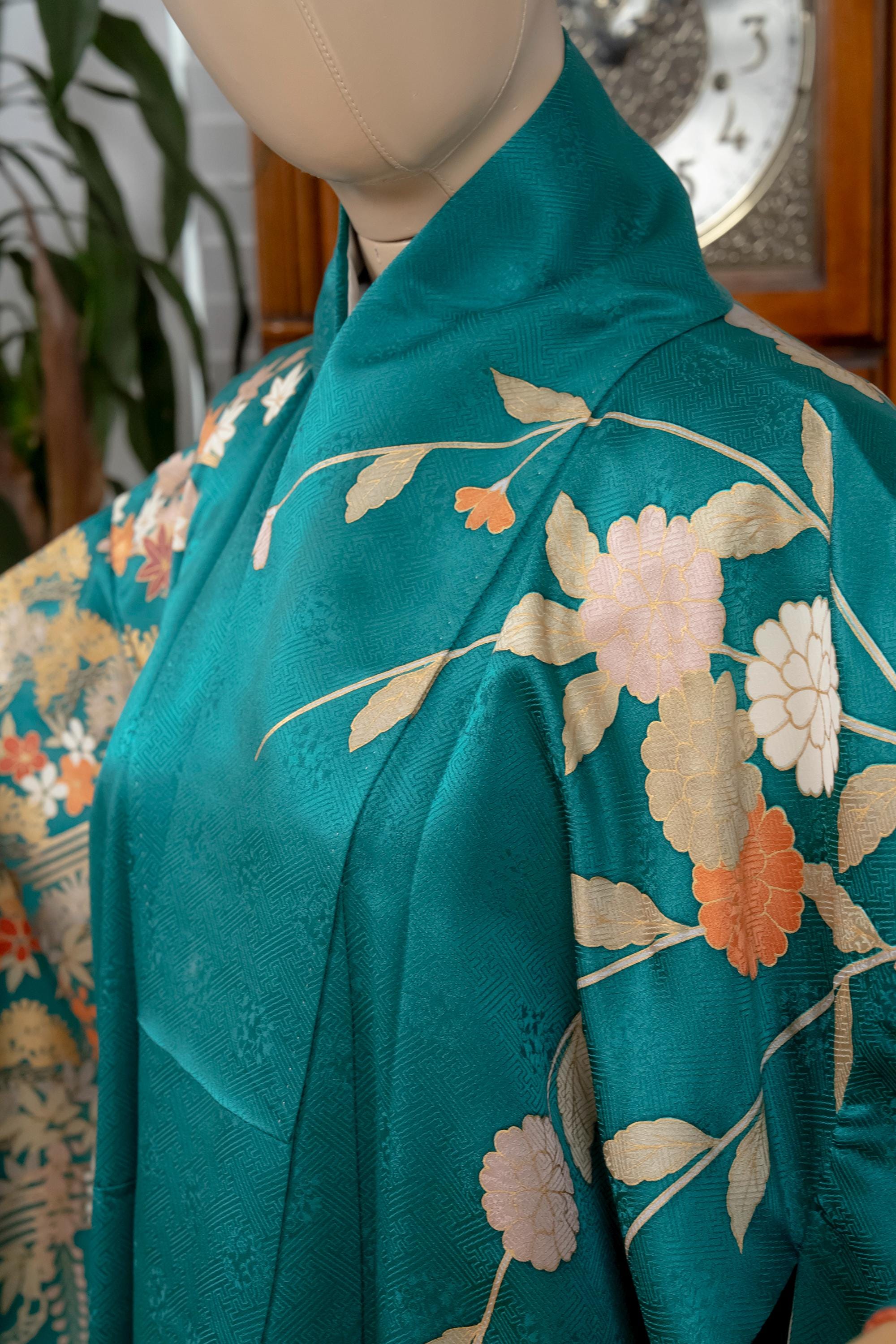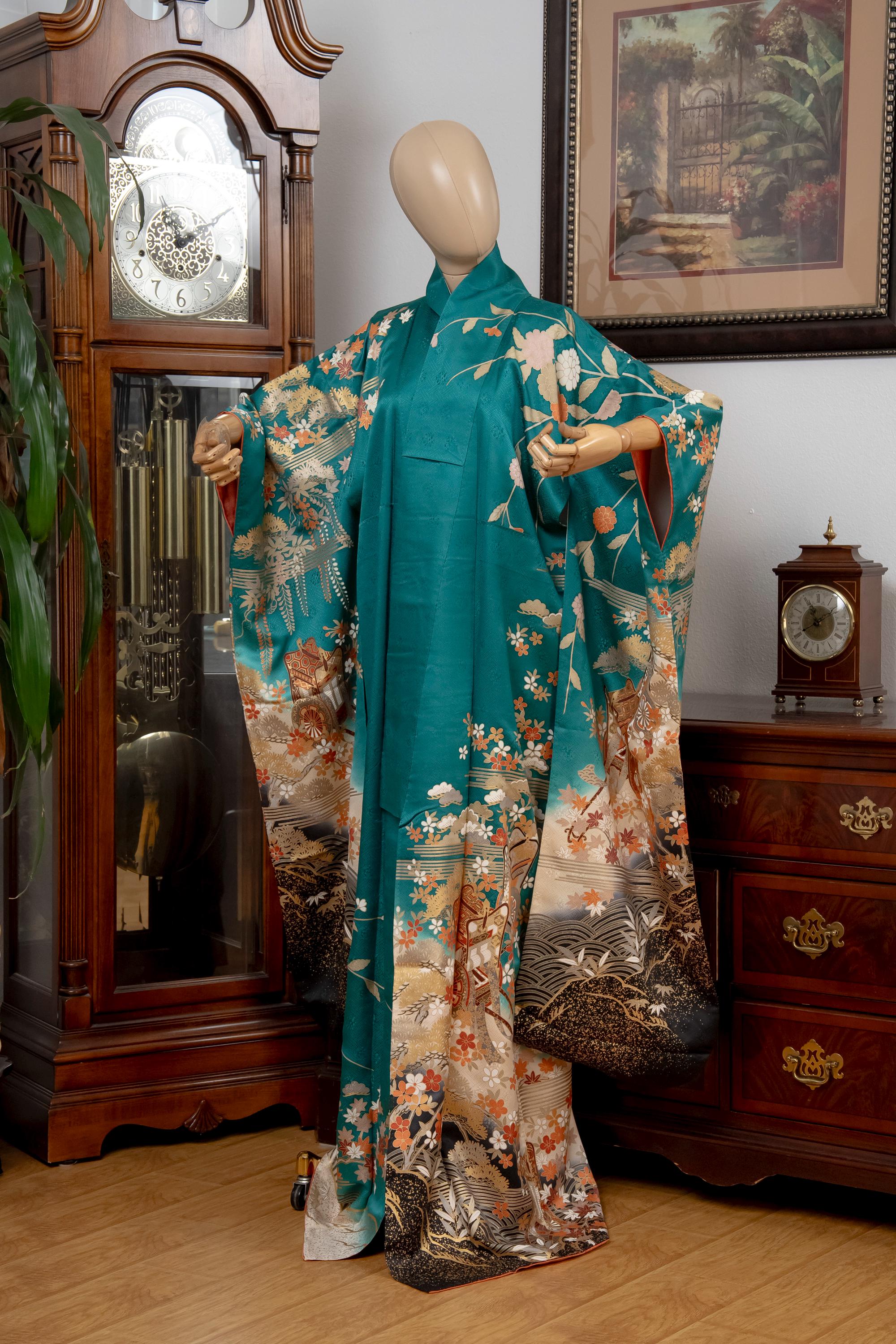 Furisode is a formal kimono distinguishable by its long sleeves. Furisode is the most formal style of kimono worn by young unmarried women in Japan, generally used for formal social functions such as the tea ceremony, wedding ceremonies and graduation ceremonies. Furisode's elegant aesthetics along with such fine details often make a great wall decoration for home as well.
