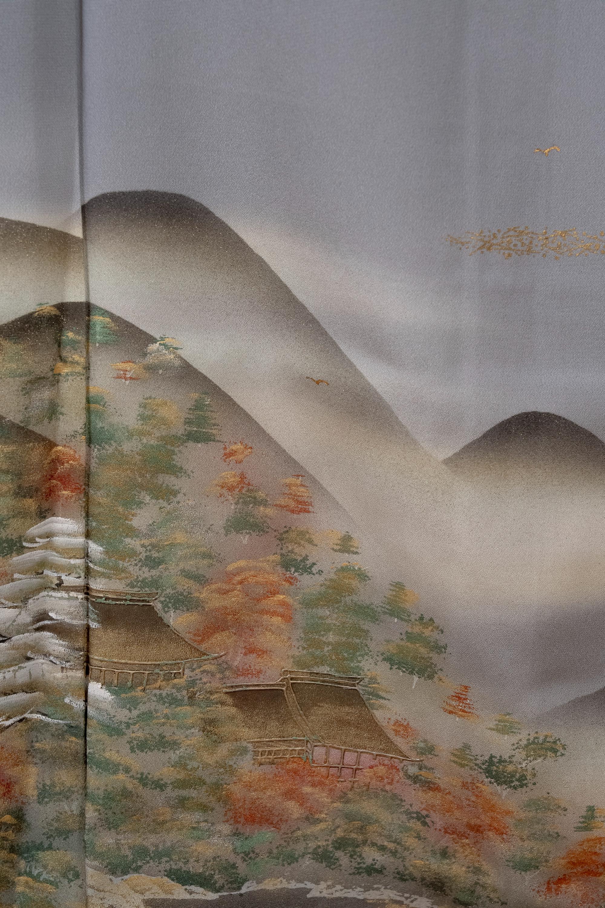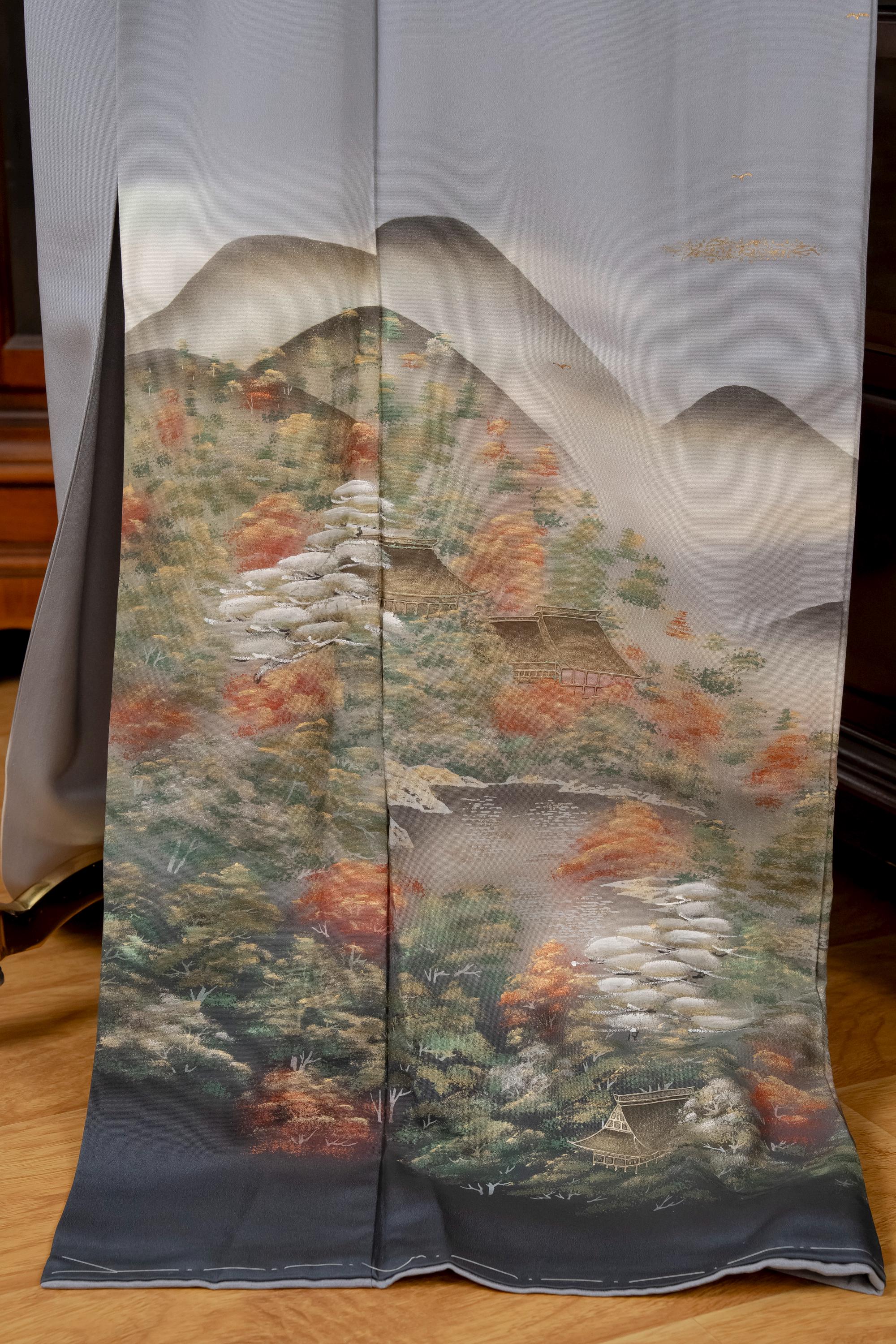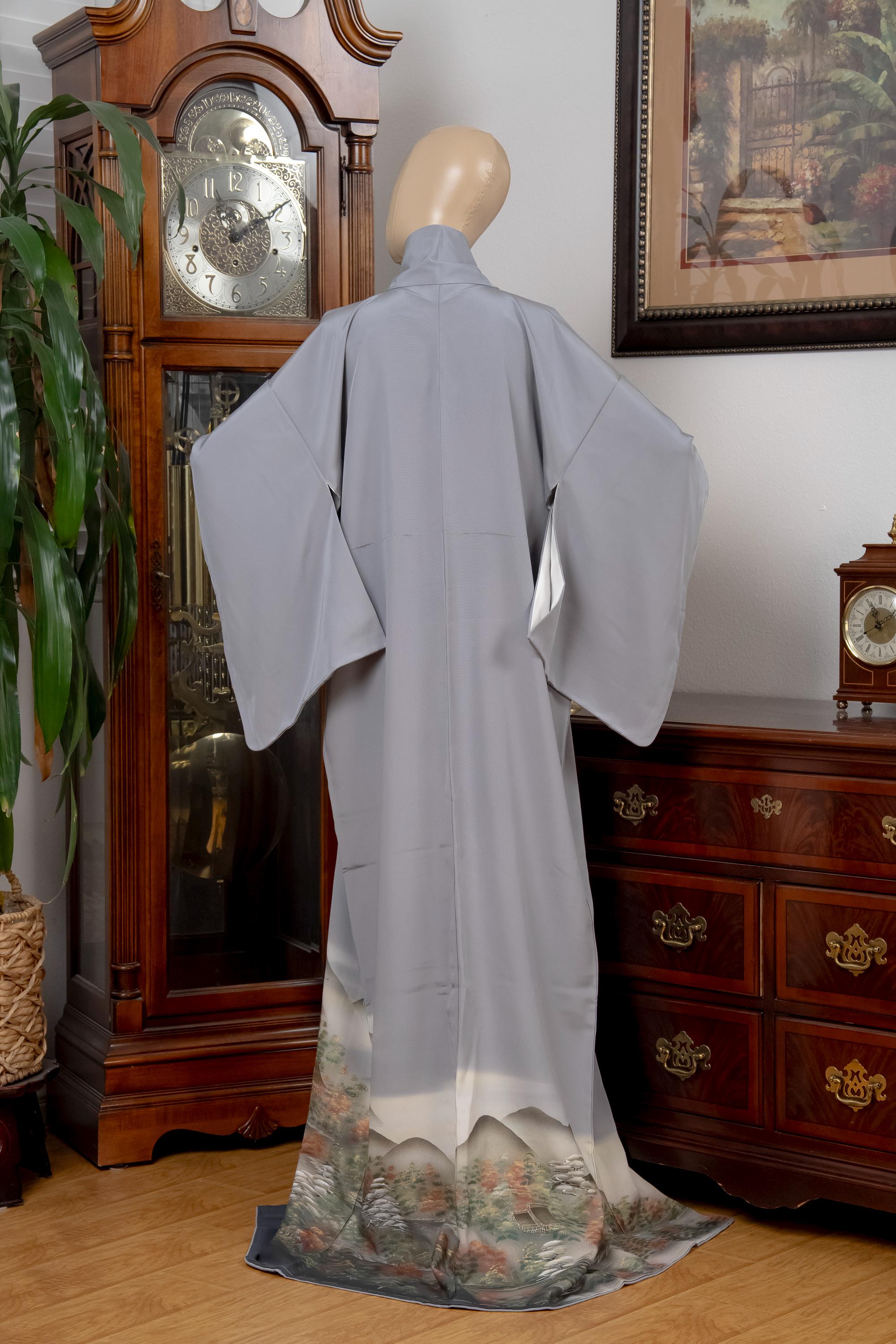 Tomesode is the most formal, high class Kimono for all ceremonies and occasions. Black ones are worn by married women and colored ones are worn by both married and unmarried women. Distinct characteristics of Tomesode are family crests and surrounding patterns around the hem. Numbers of family crests specify formality and rank.