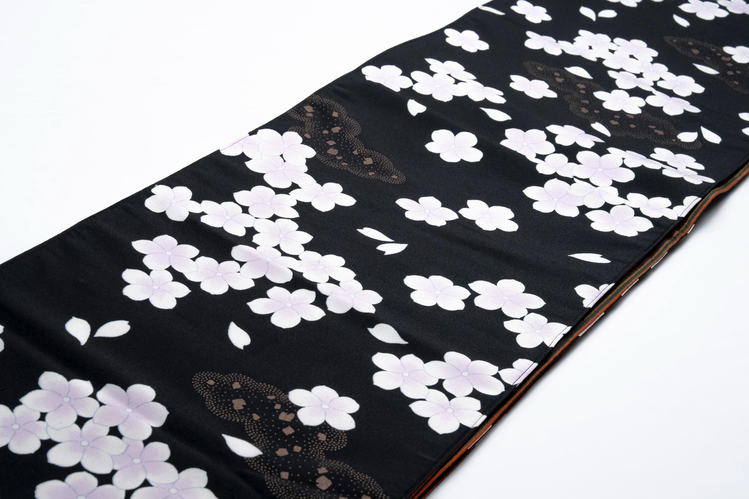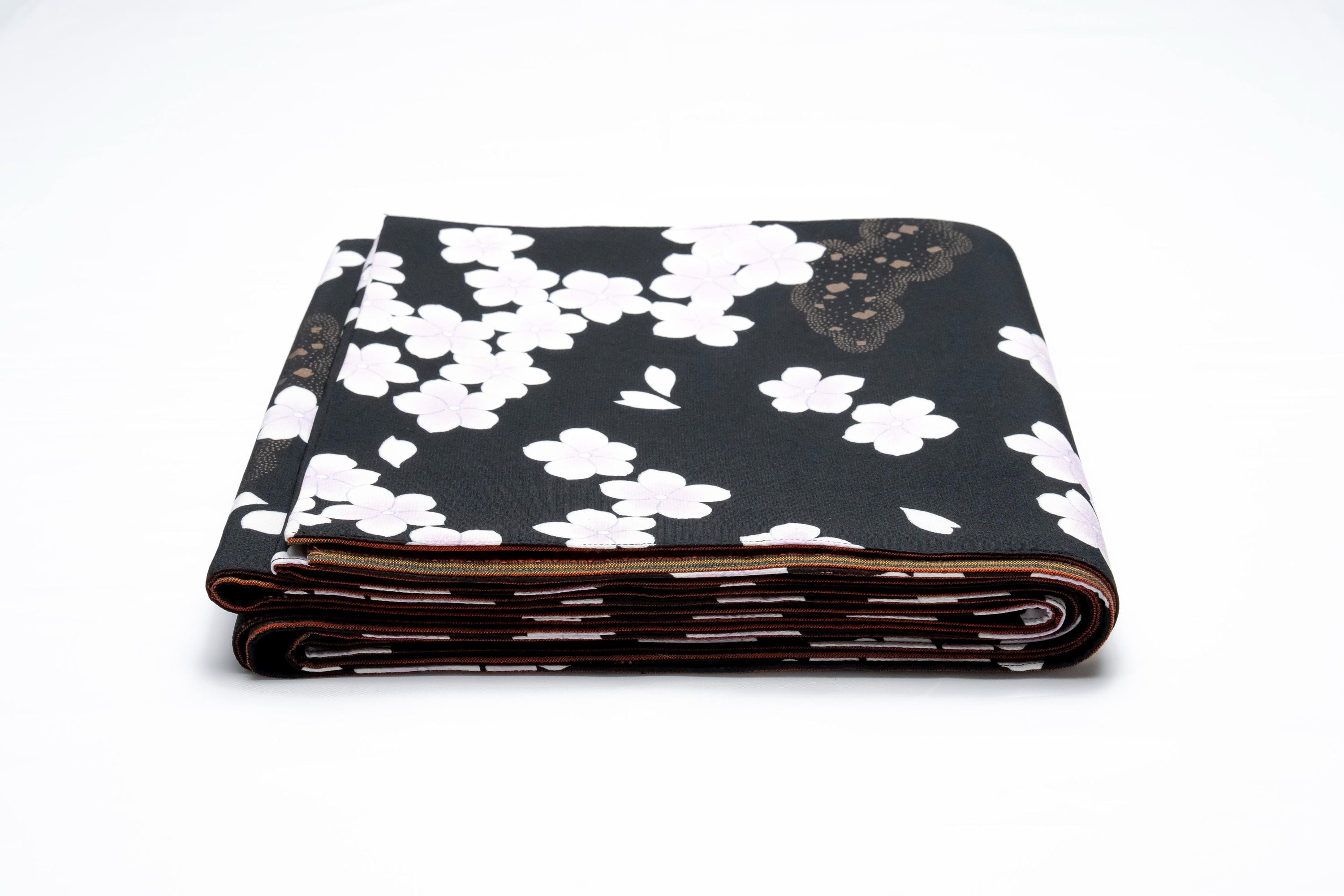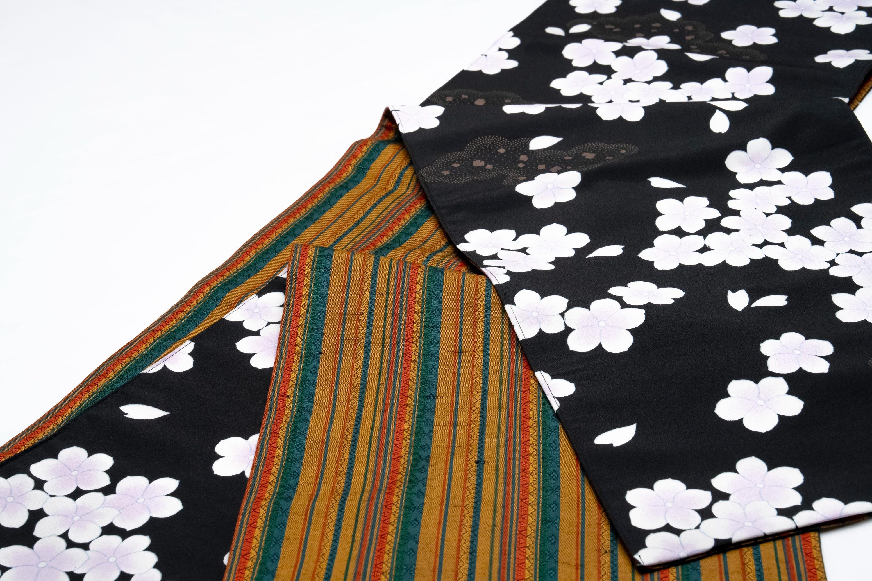 Fukuro Obi is a full-size sash belt that wraps around the torso in women's formal Kimono wearing. It is wider, longer and heavier than other informal Obis and serves the purpose of keeping the Kimono front closed securely, drawing up excess fabric to adjust the length of Kimono, and decorative expressions.