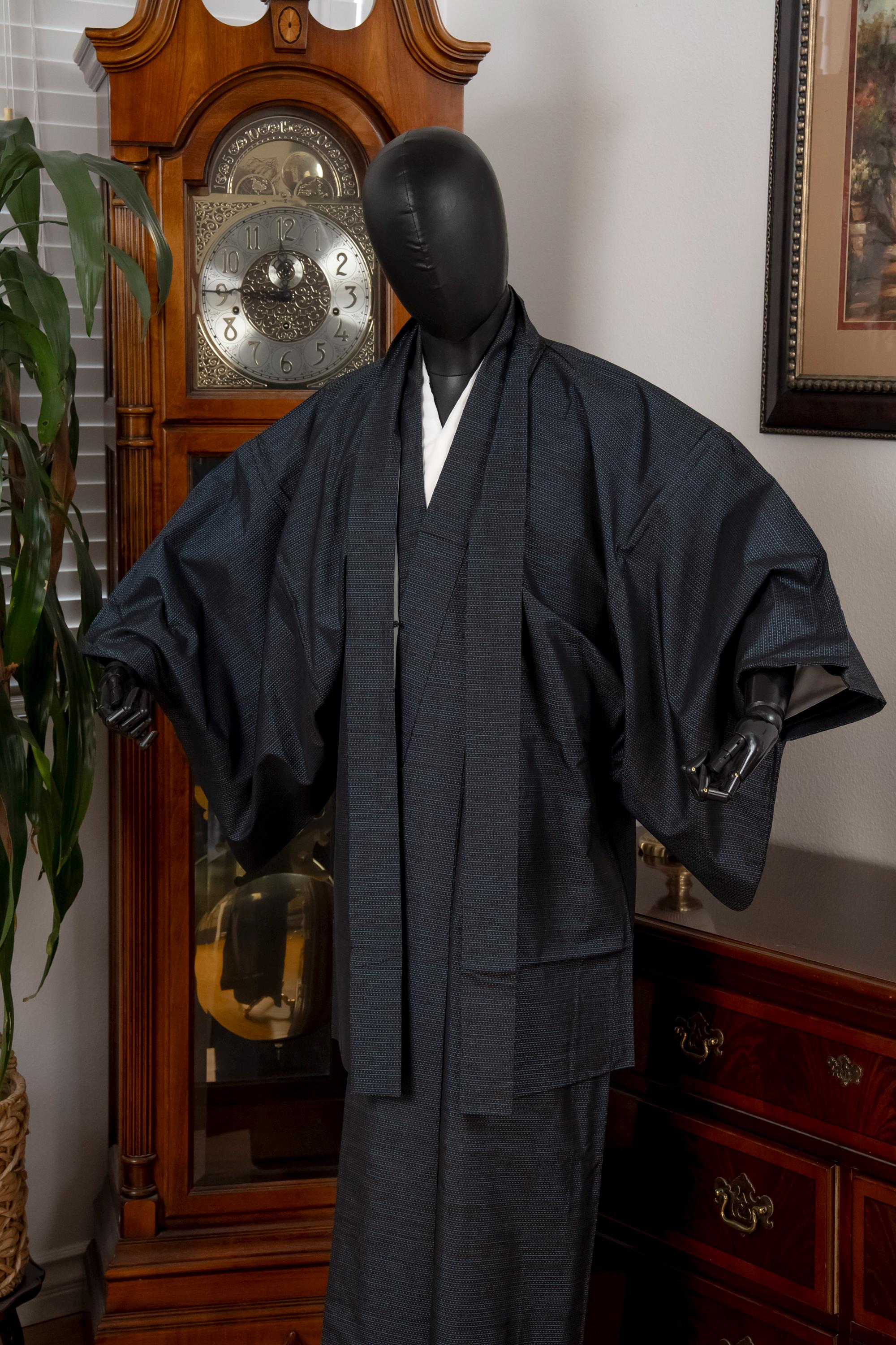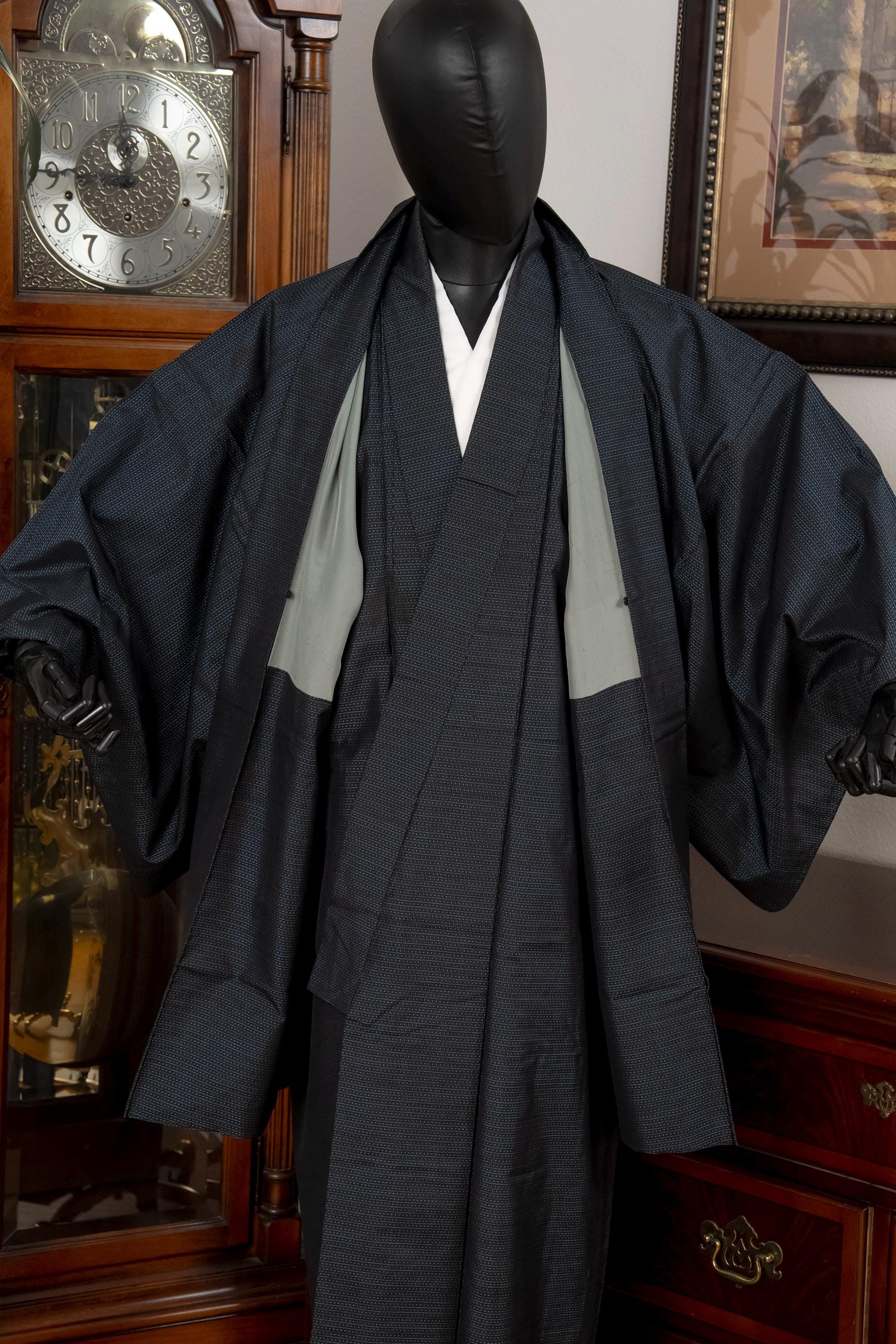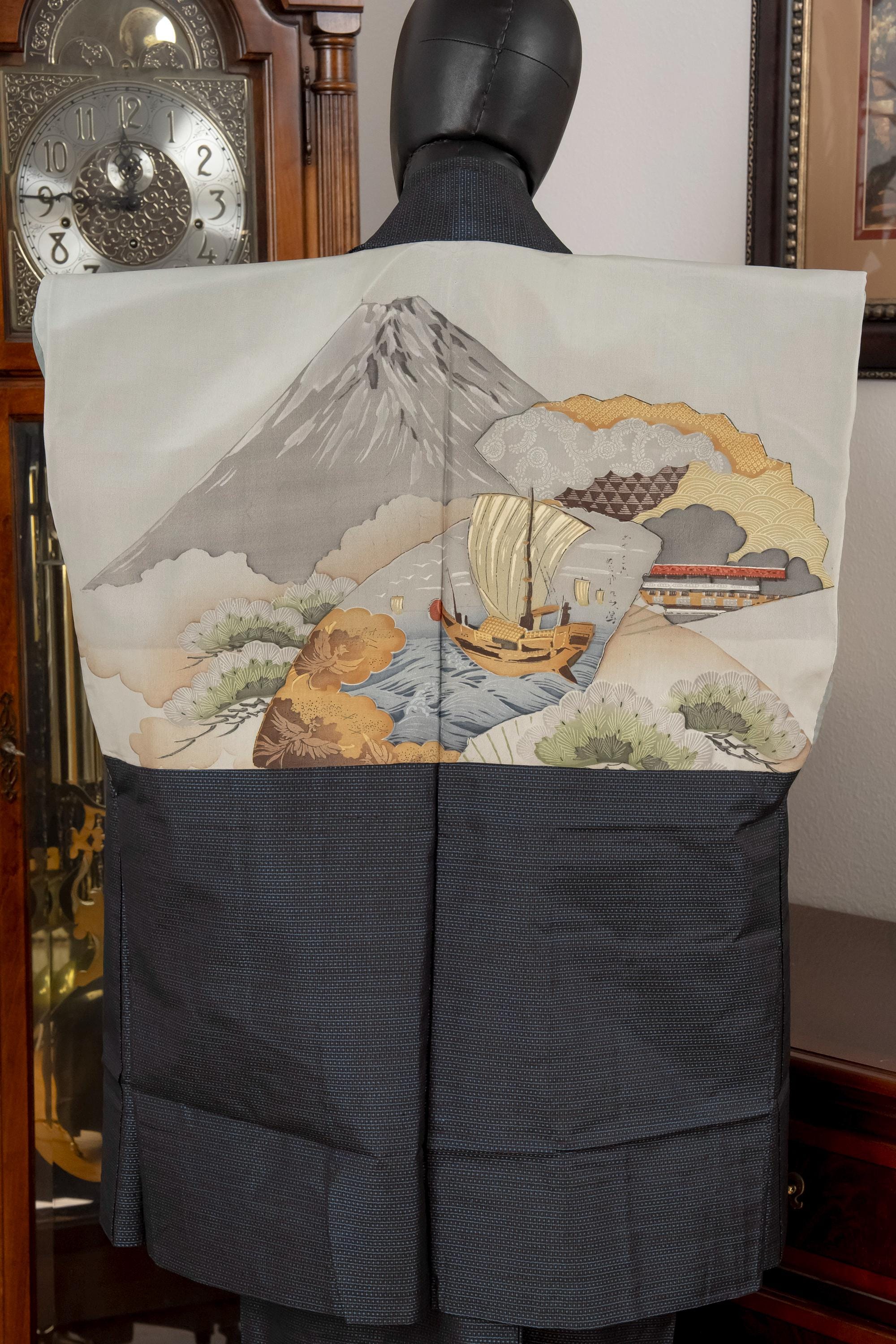 BLEMISHES: Haori has visible natural silk stains on right shoulder. Kimono also has a visible stain on right chest. Please see gallery images for details.