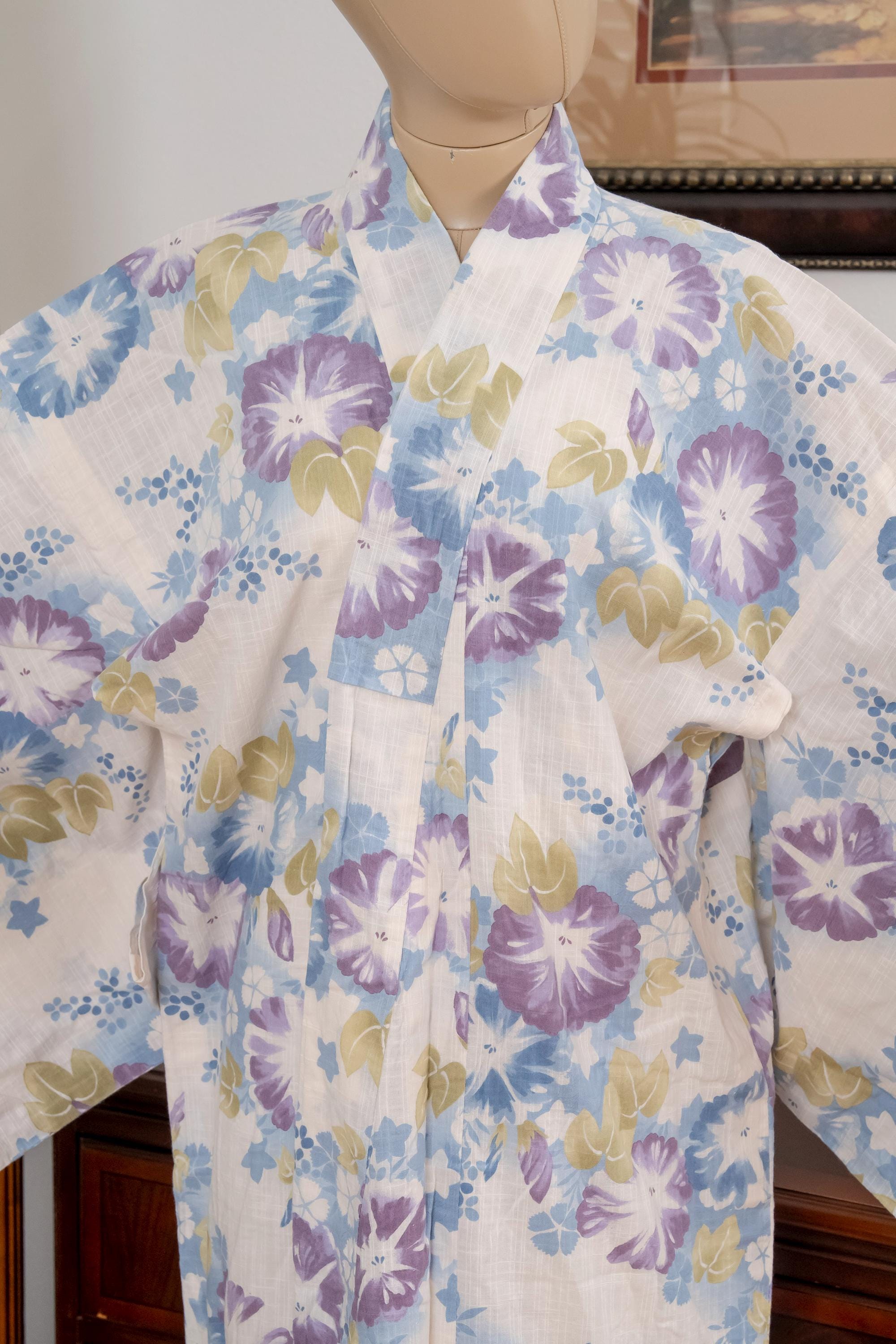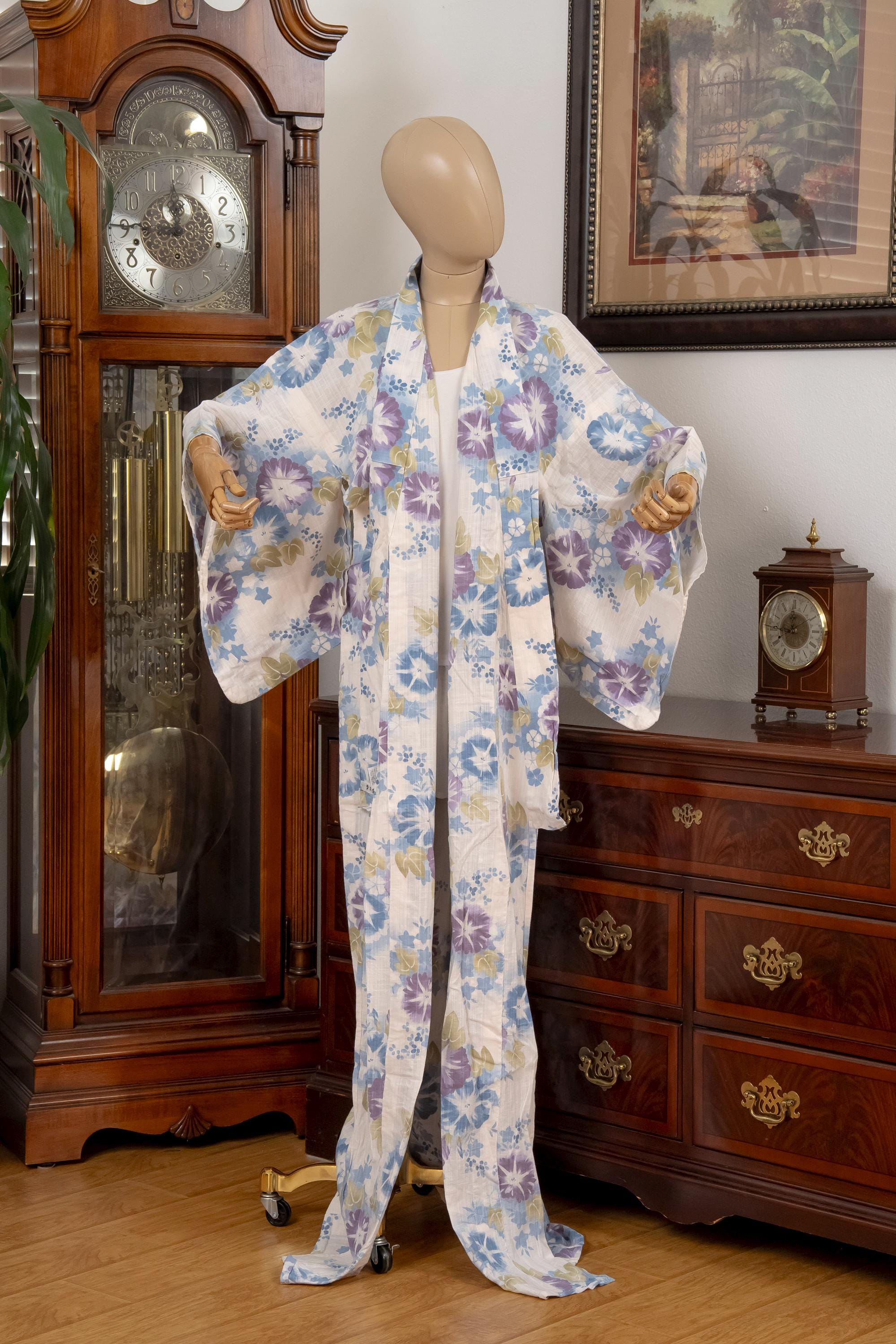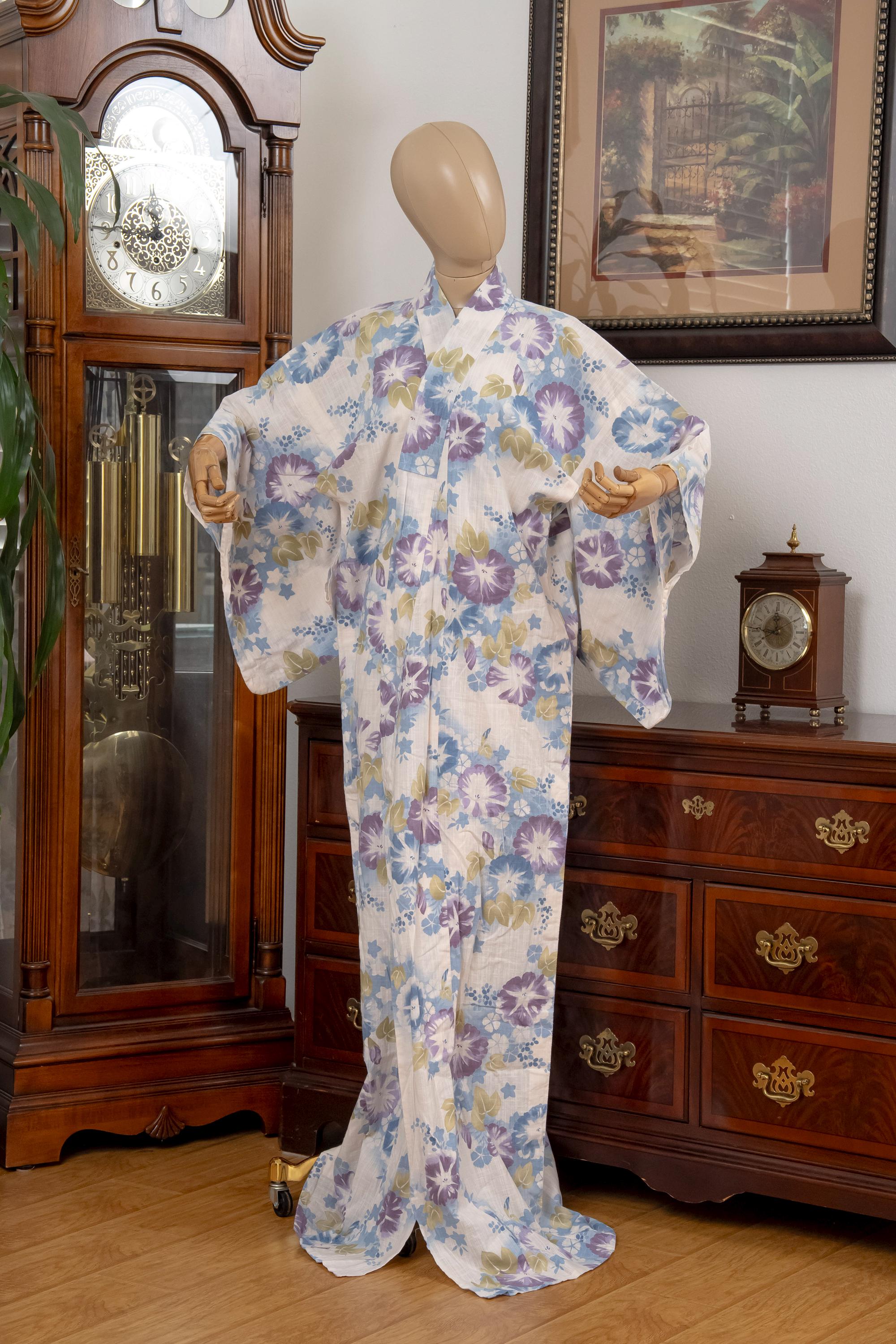 Please keep in mind that female Kimonos are supposed to fit long. You will need to adjust the fit to your size with Kitsuke accessories and Obi belt.