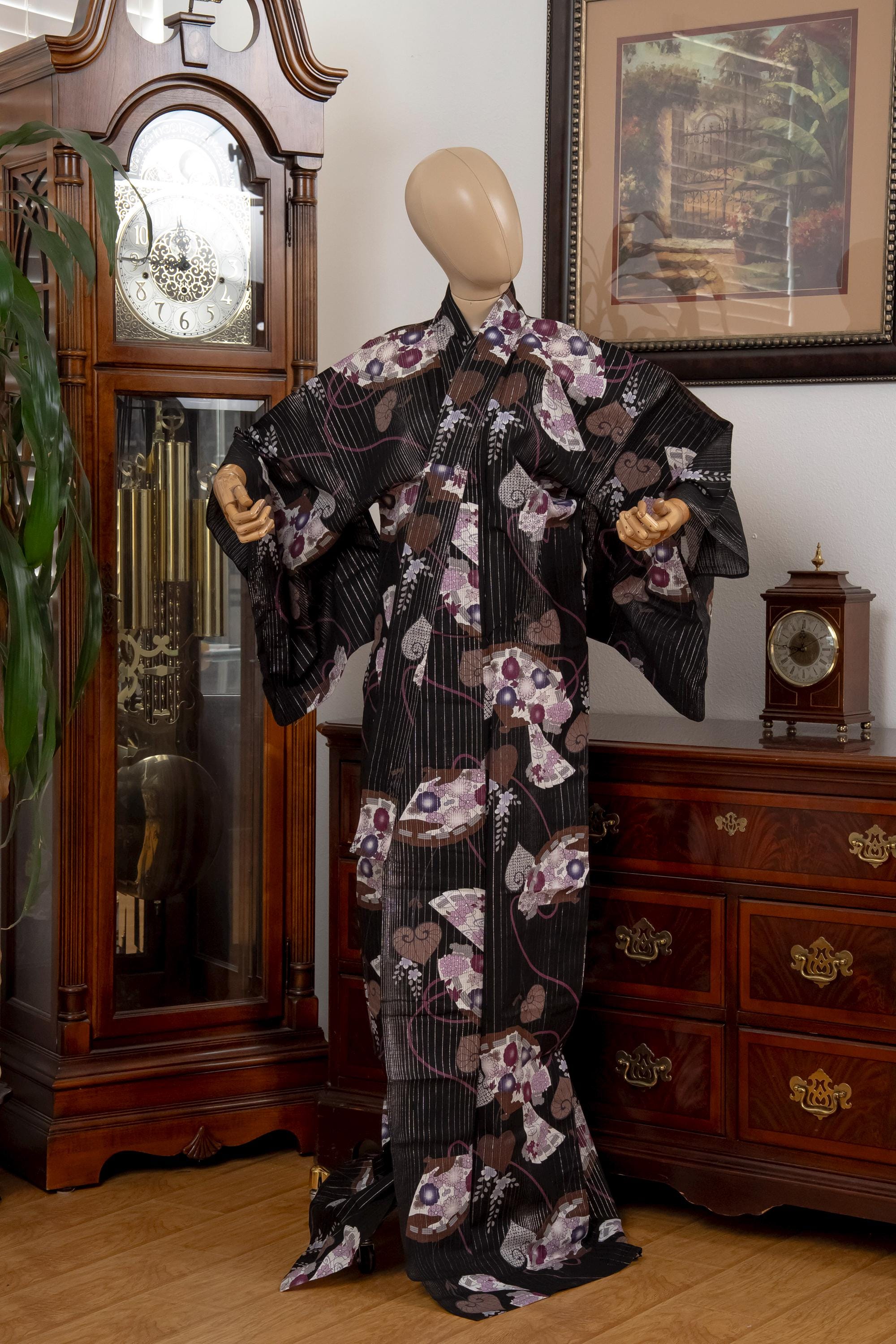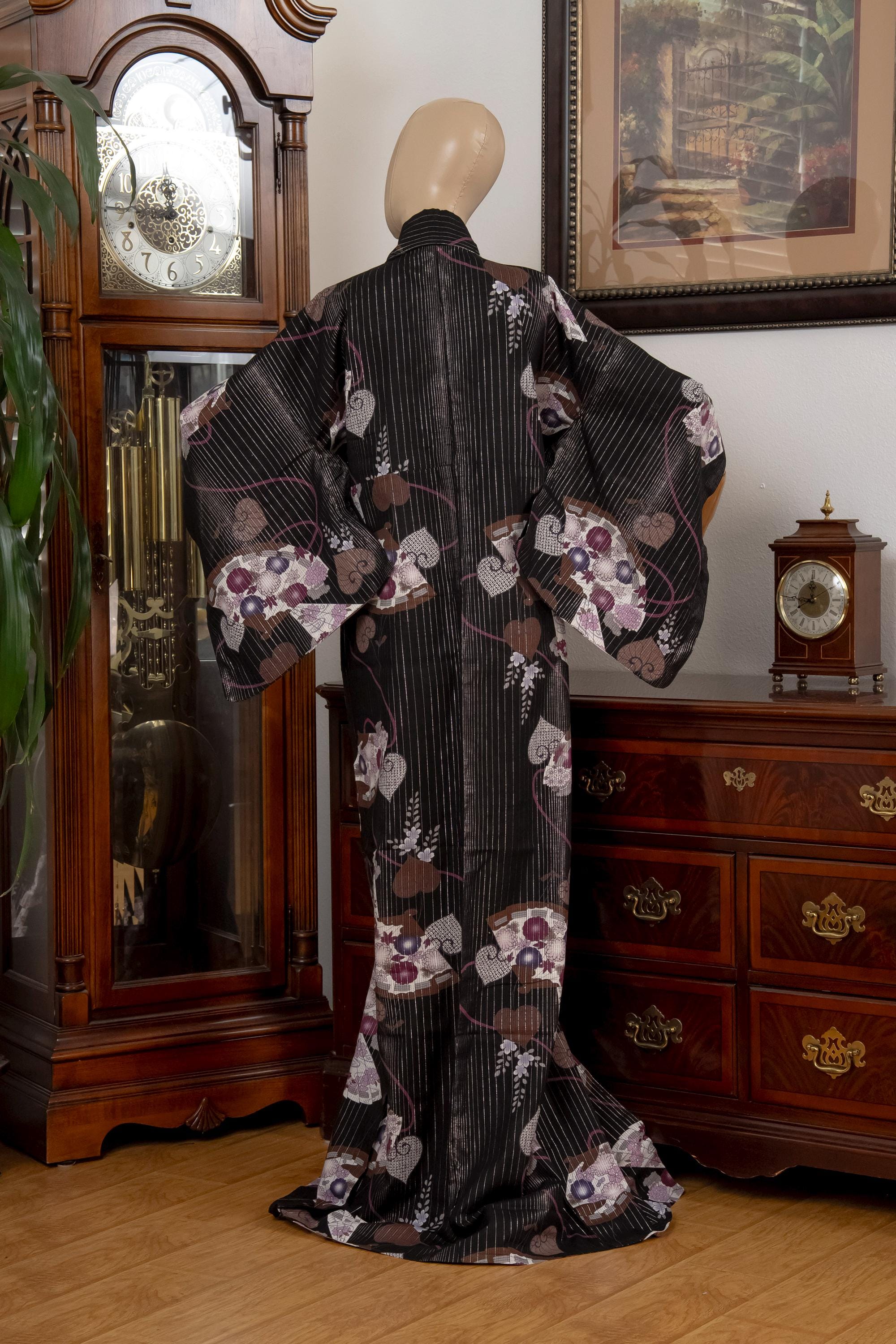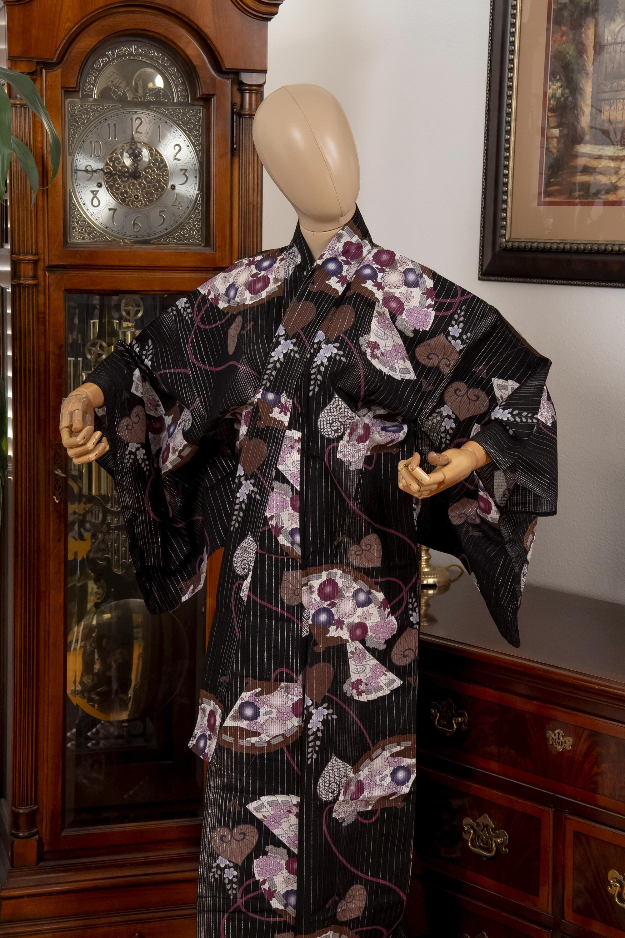 Please keep in mind that female Kimonos are supposed to fit long. You will need to adjust the fit to your size with Kitsuke accessories and Obi belt.