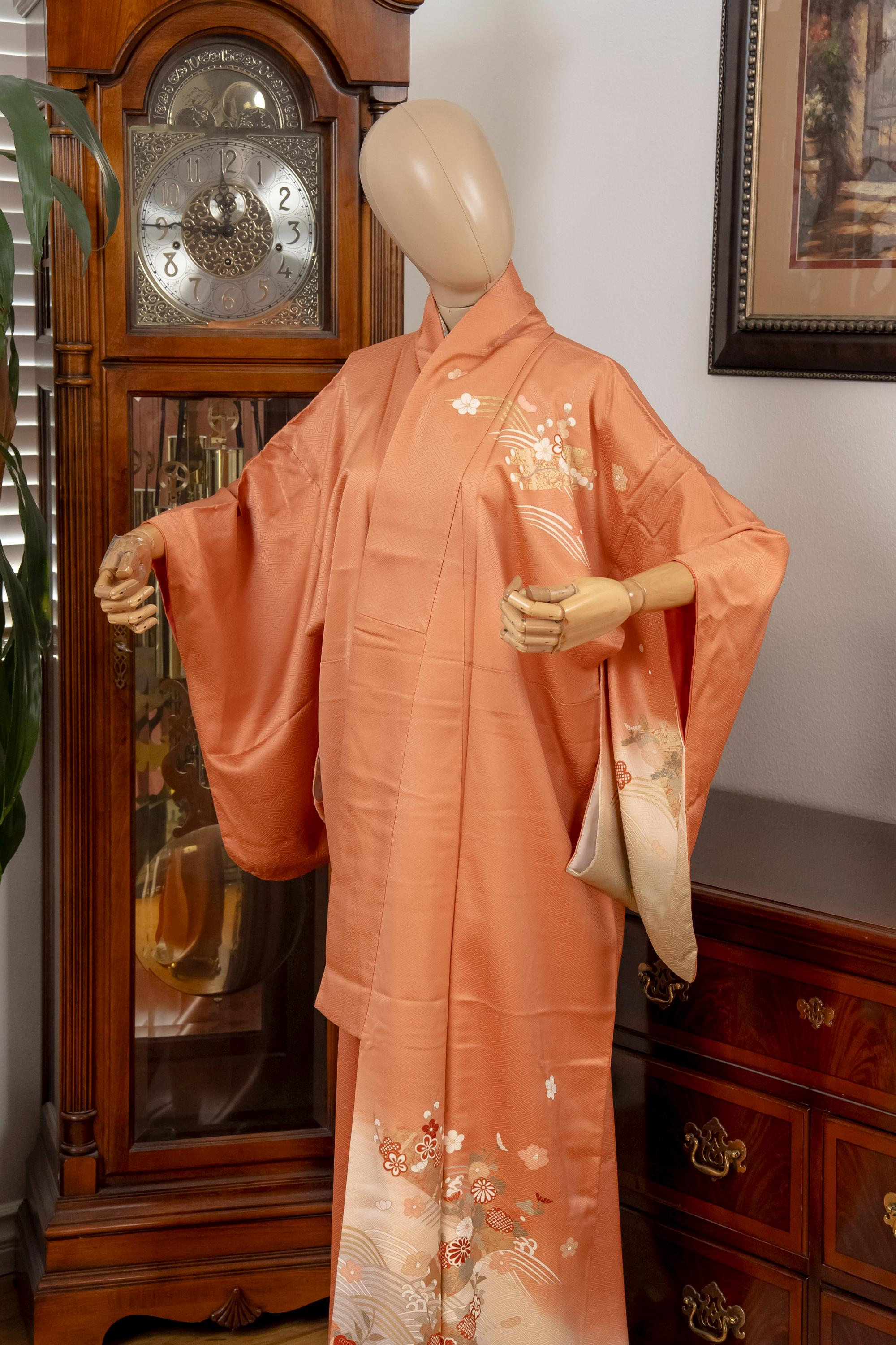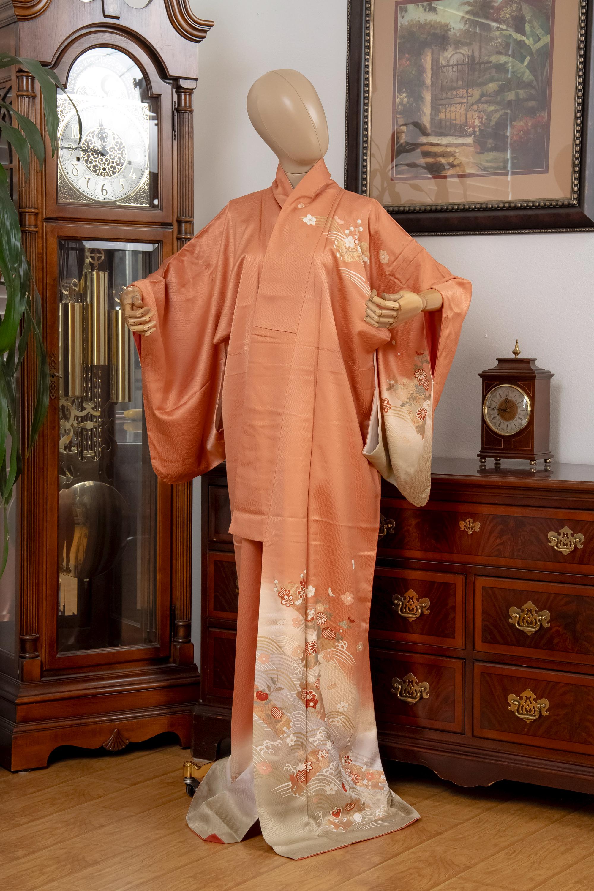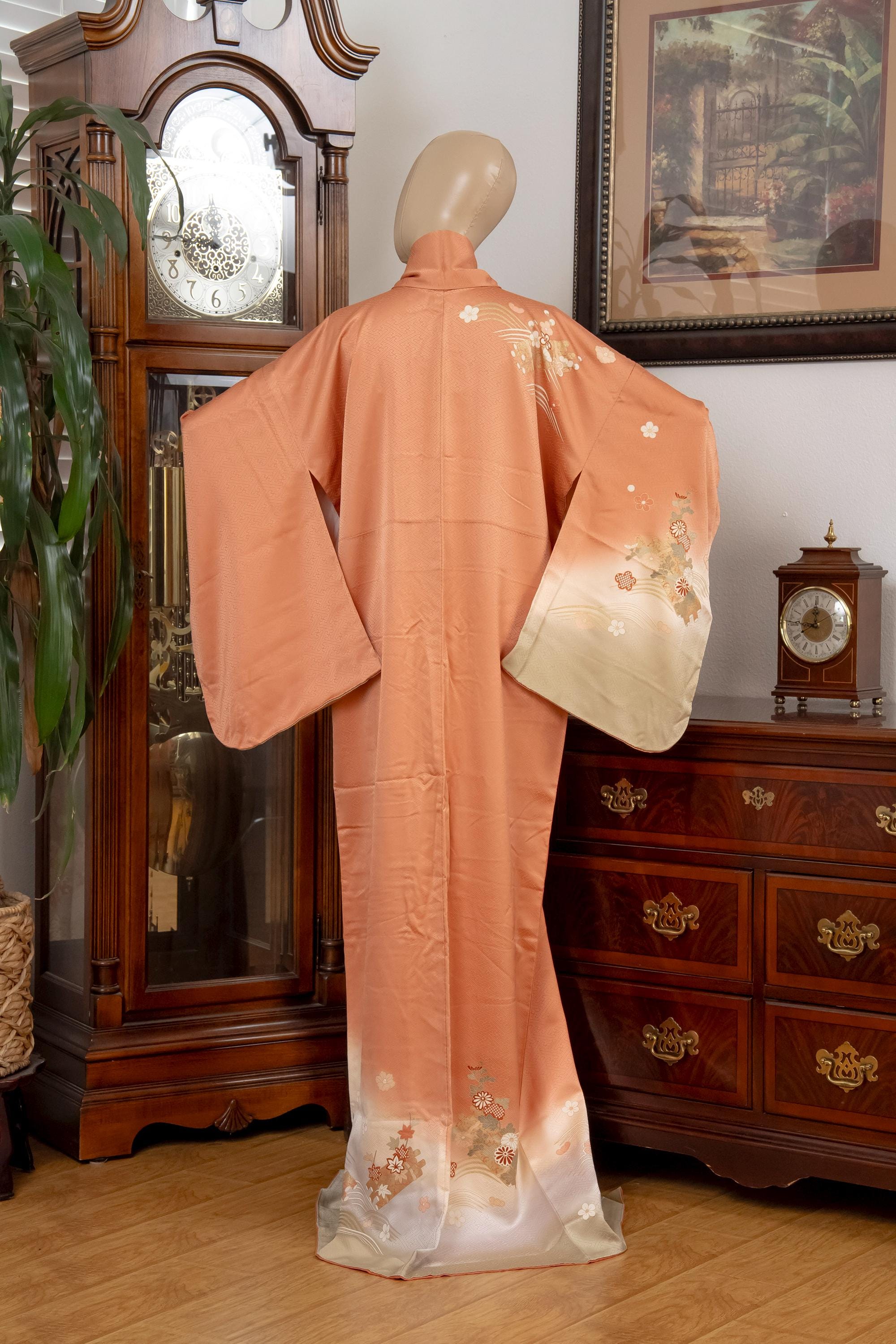 Please keep in mind that female Kimonos are supposed to fit long. You will need to adjust the length to your size by tying with Kitsuke accessories and Obi belt.