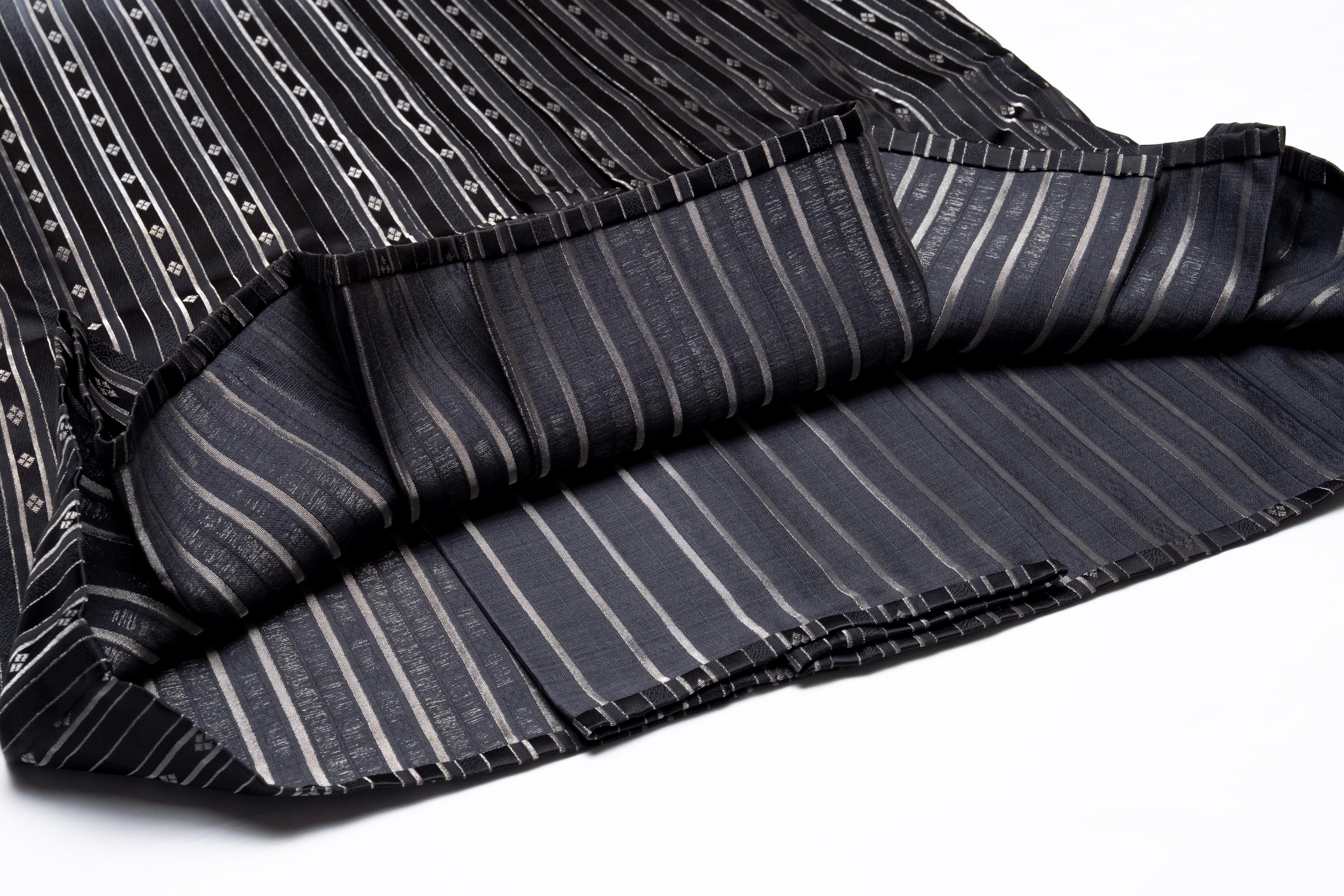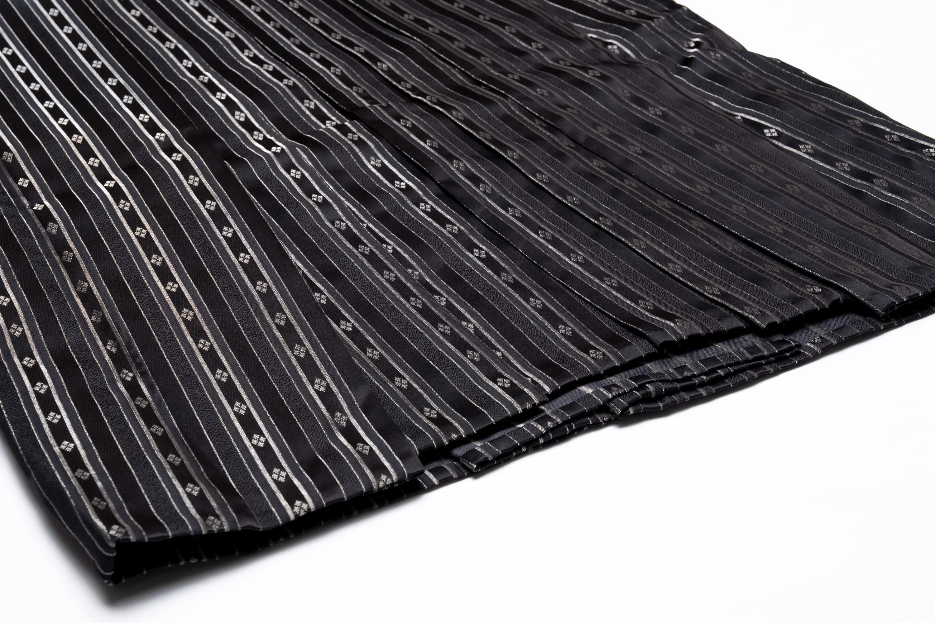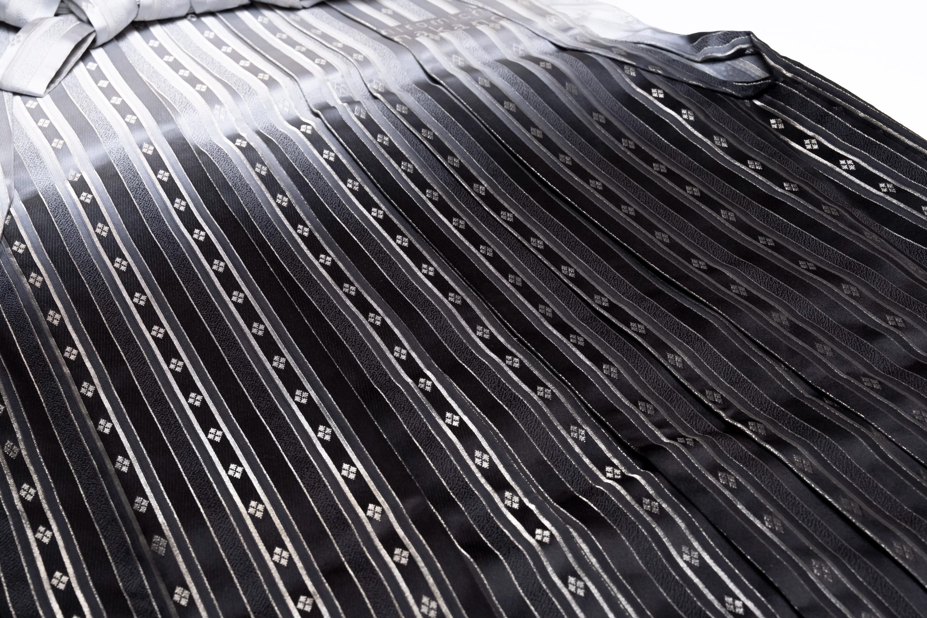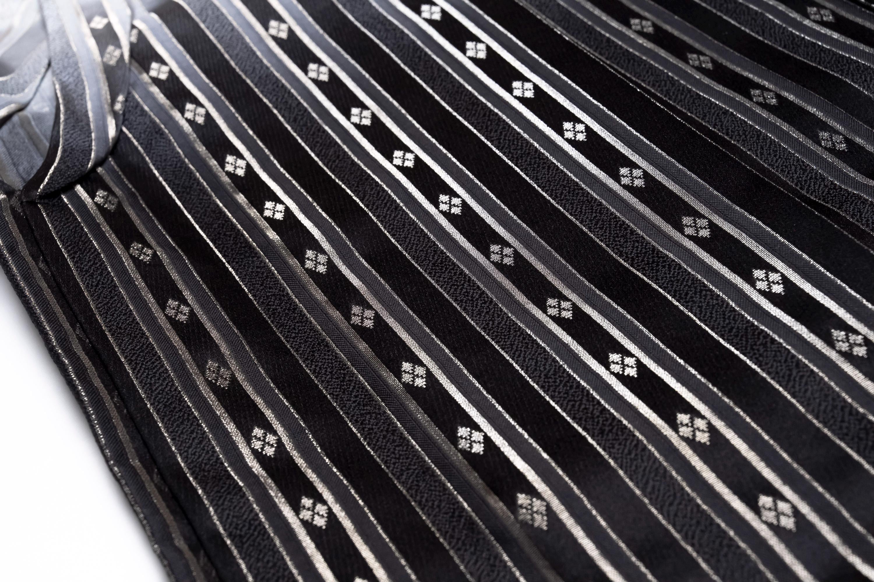 Hakama are wide-legged pants with formal elegance that are typically worn over a kimono or other traditional Japanese garments. Andon Hakama, known as “lantern hakama,” are the skirt type Hakama that features pleats that open outwards, resembling a lantern. Andon Hakama are normally worn for formal occasions, ceremonies, or martial arts demonstrations by men and women equally, while Umanori Hakama are commonly worn by women.