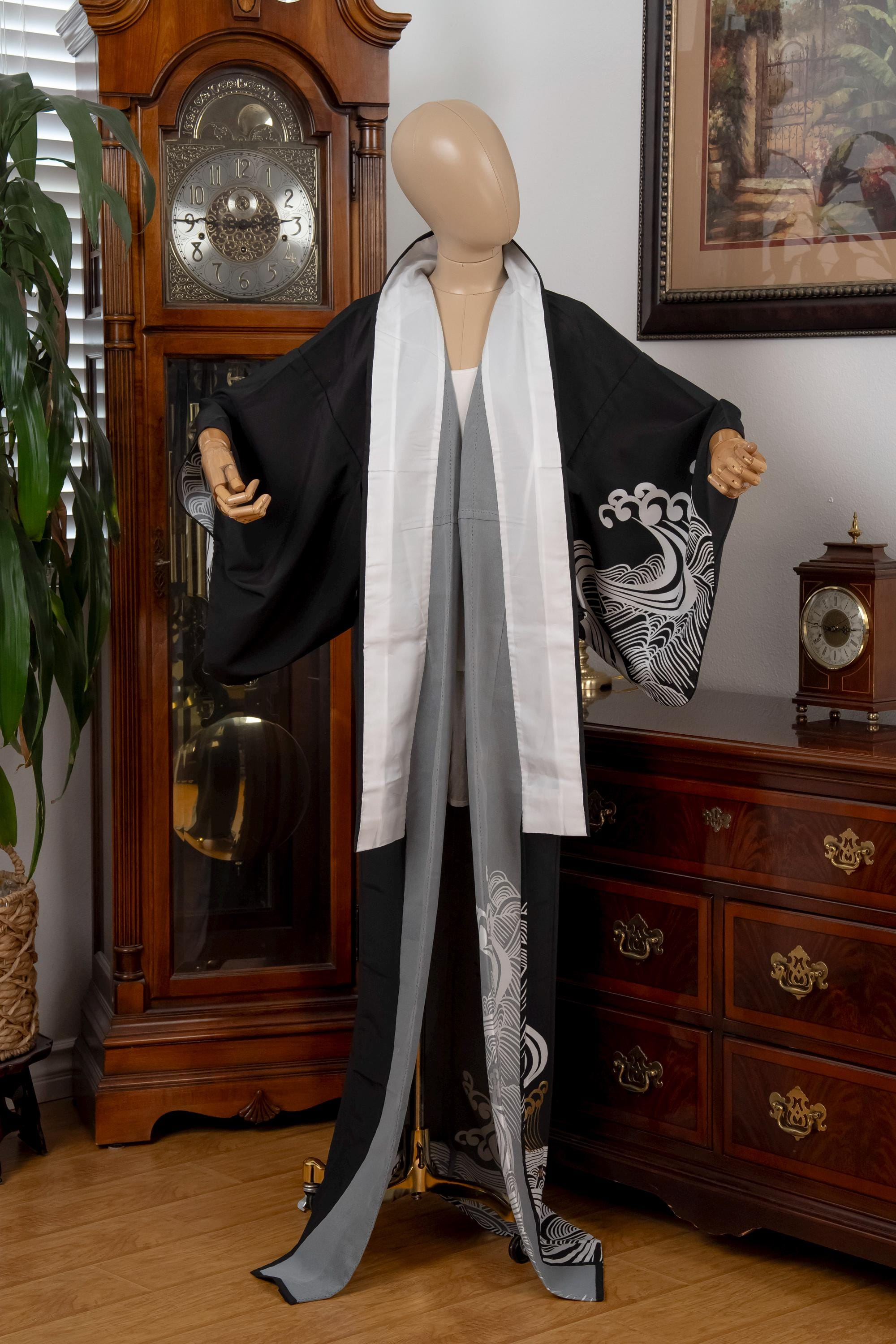Please keep in mind that female Kimonos are supposed to fit long. You will need to adjust the length to your size by tying with Kitsuke accessories and Obi belt.