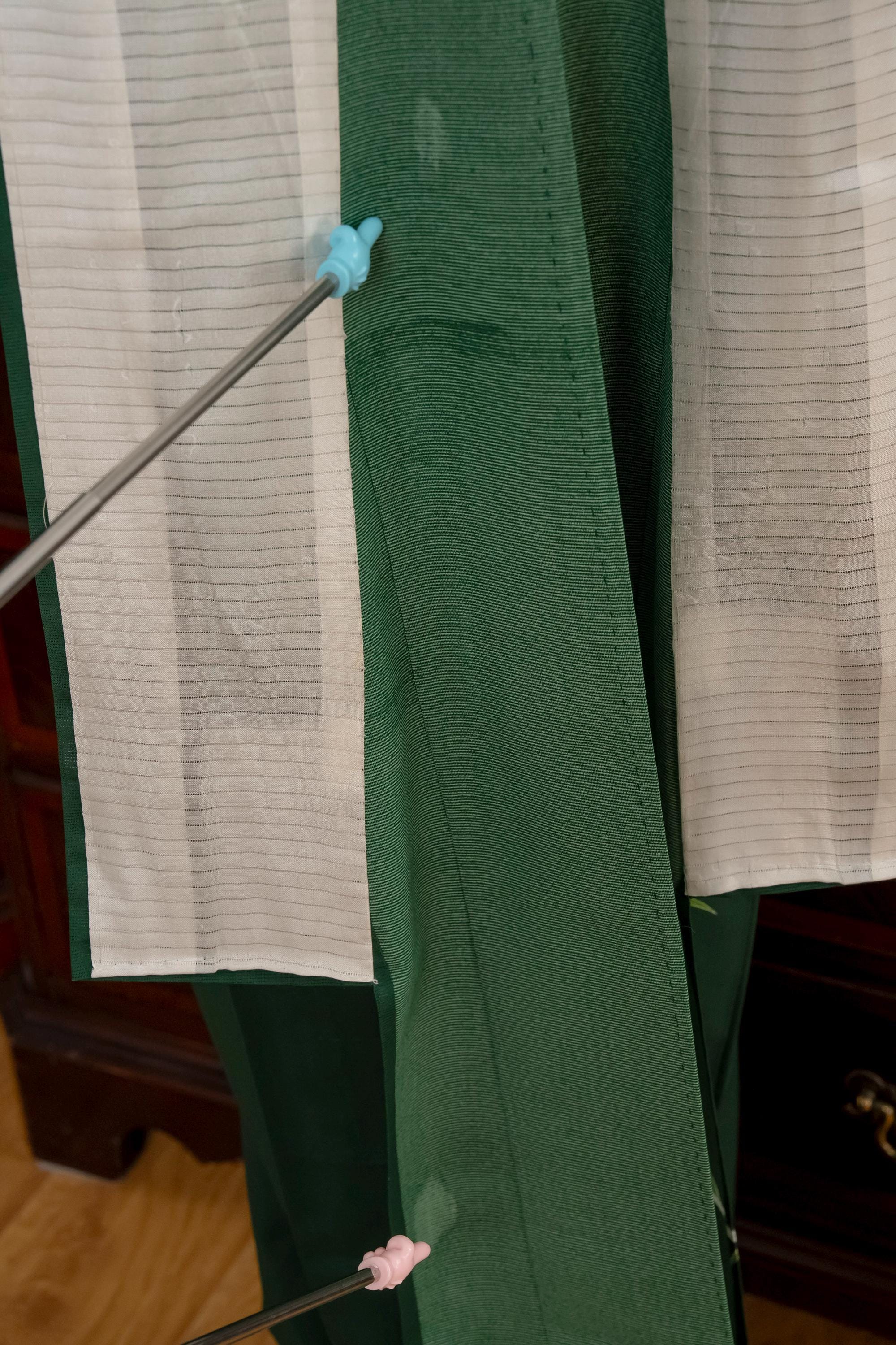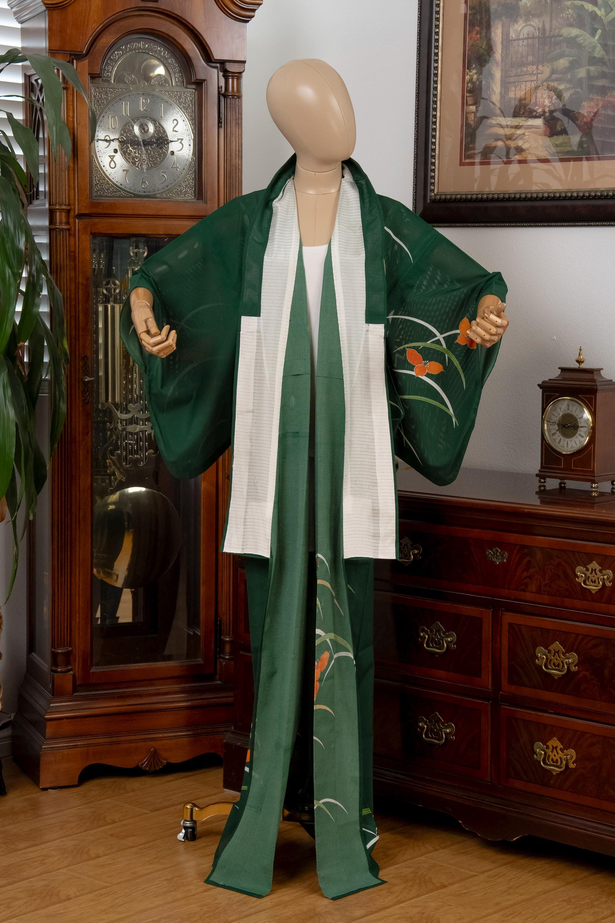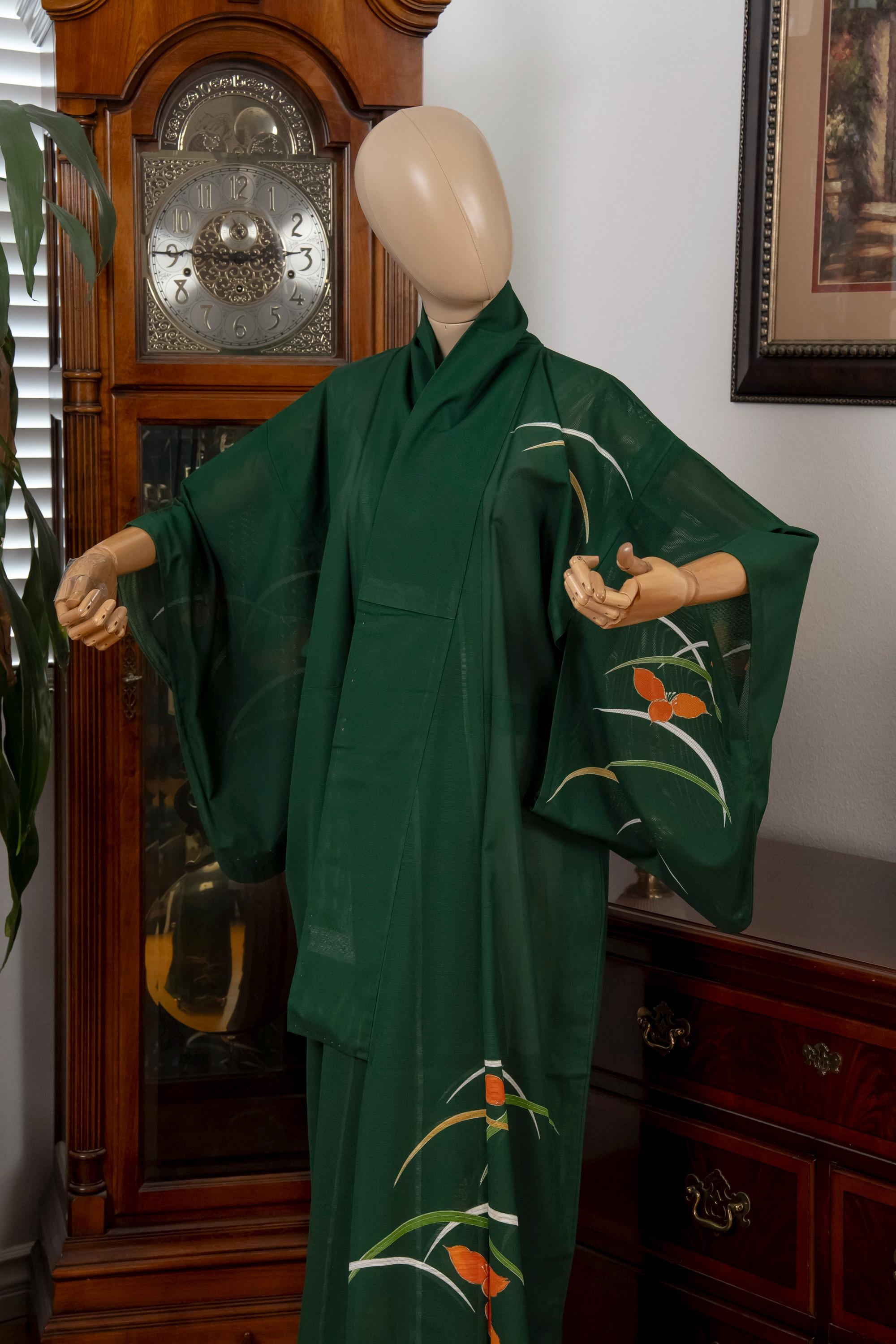 Please keep in mind that female Kimonos are supposed to fit long. You will need to adjust the length to your size by tying with Kitsuke accessories and Obi belt.