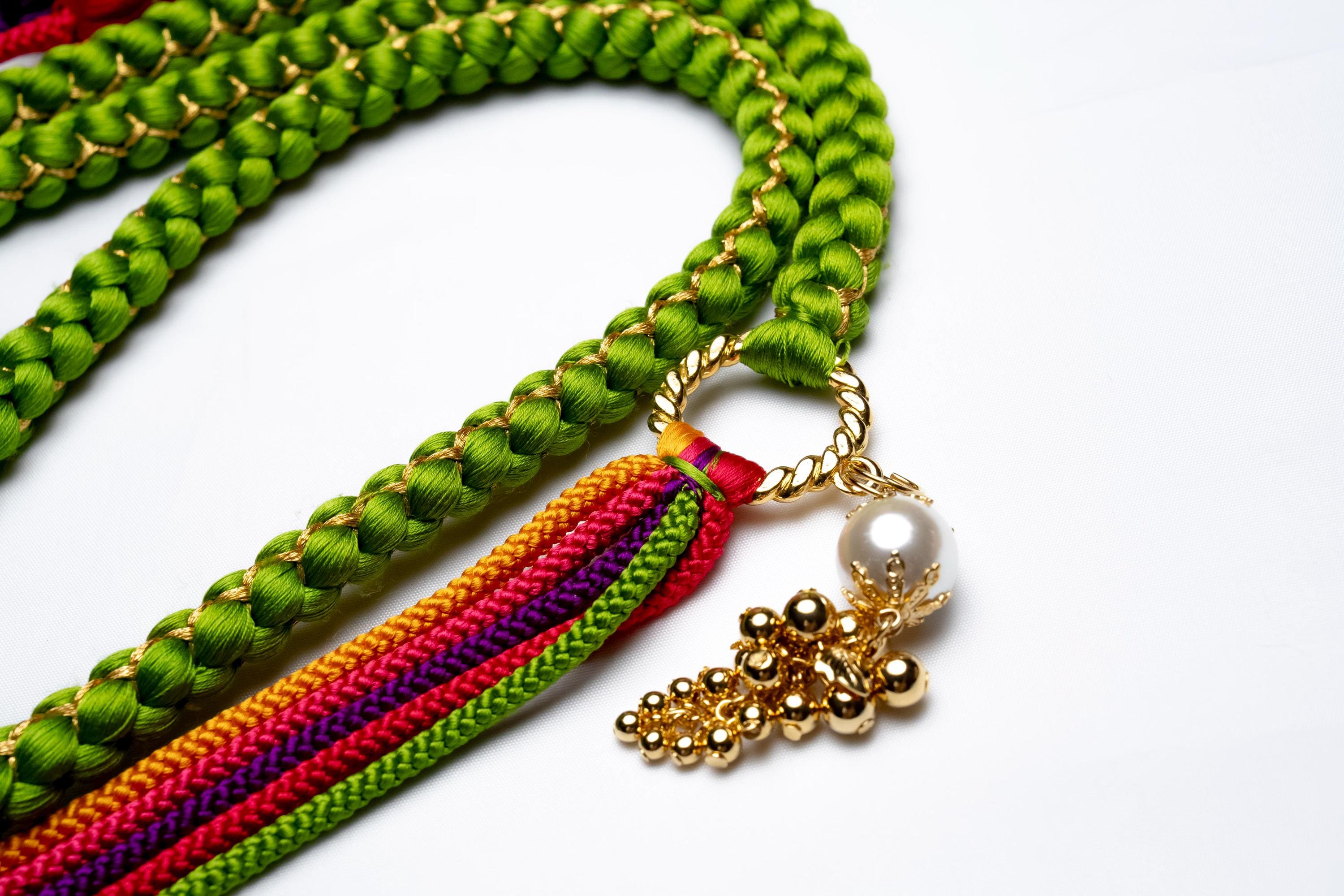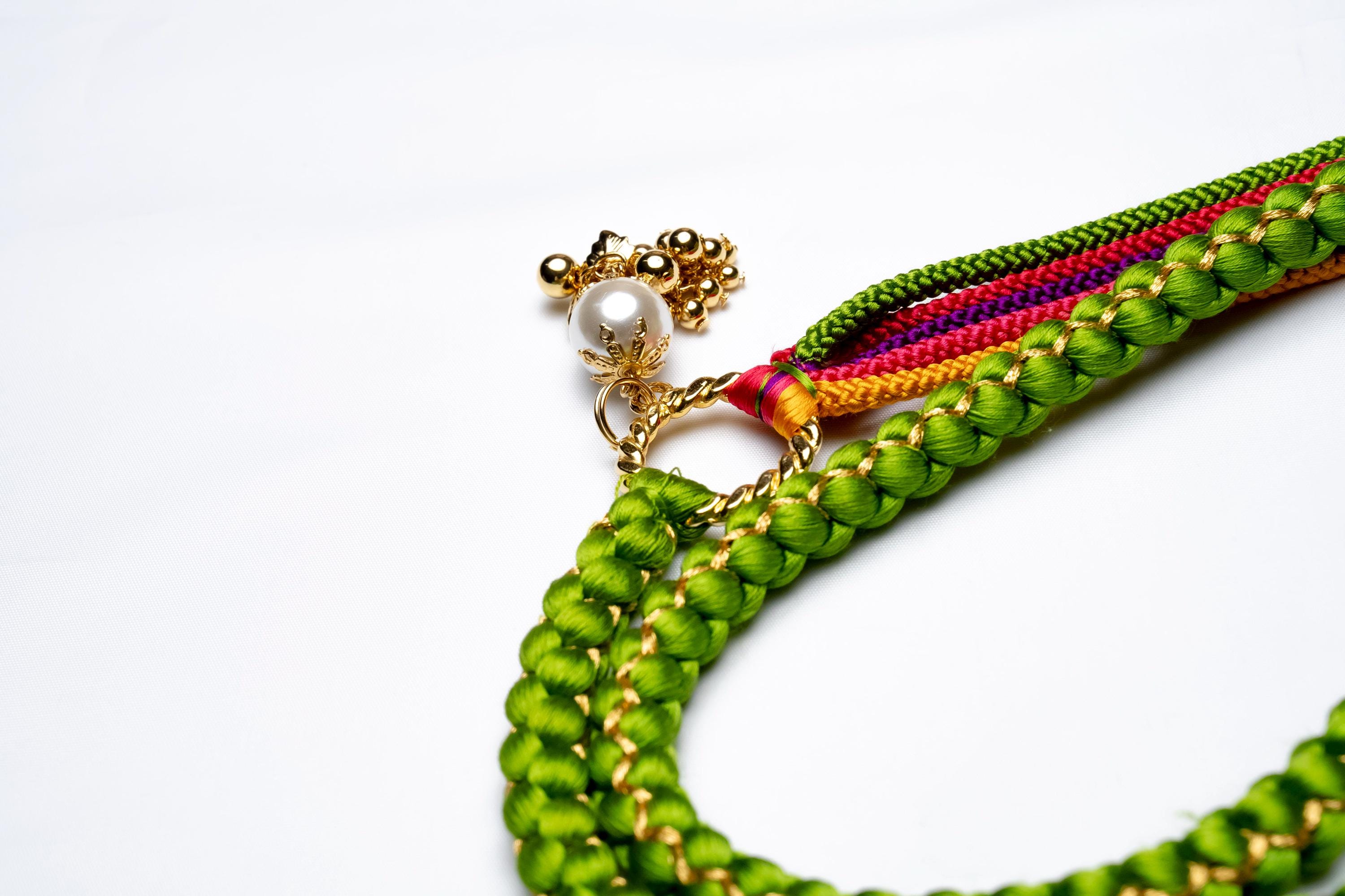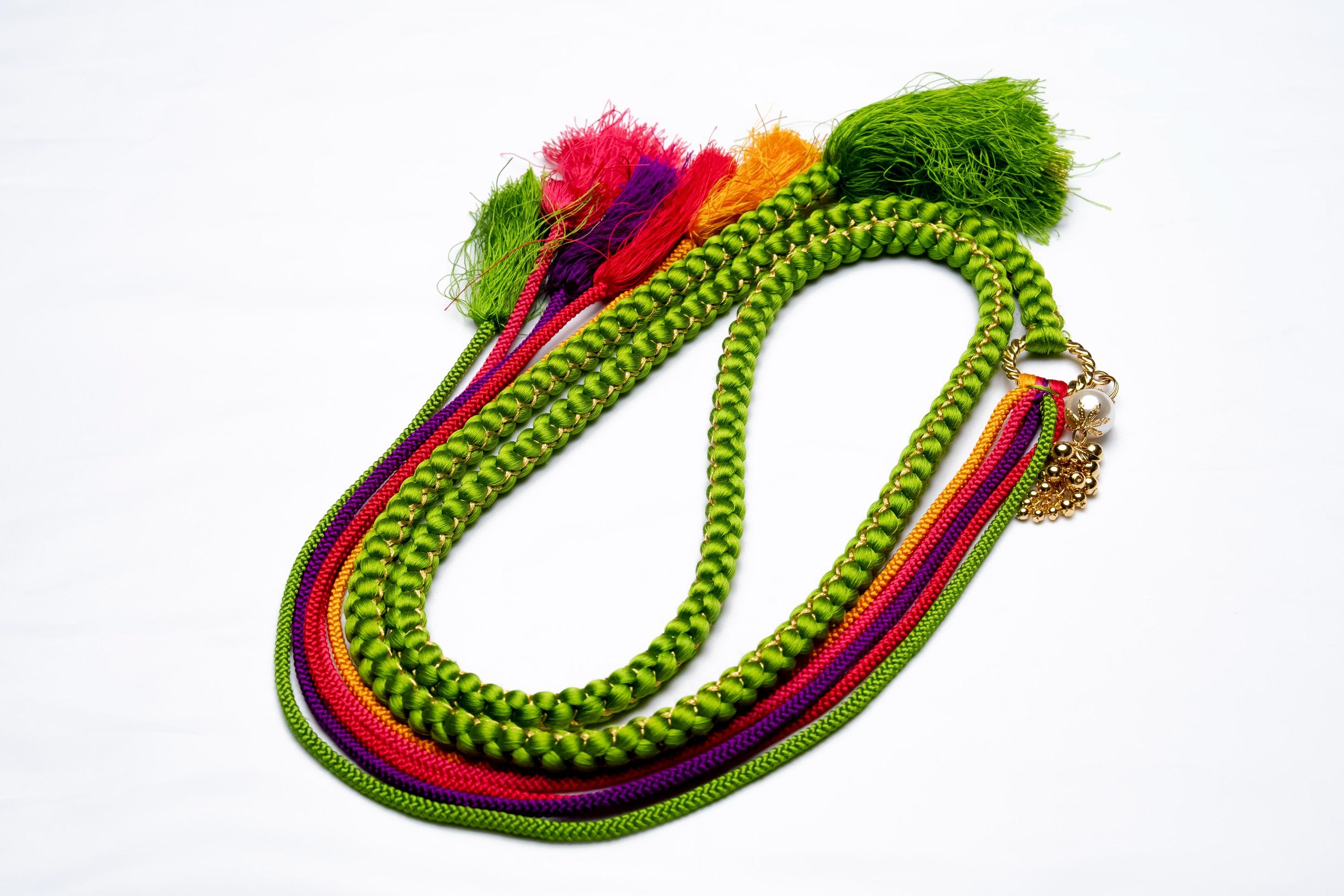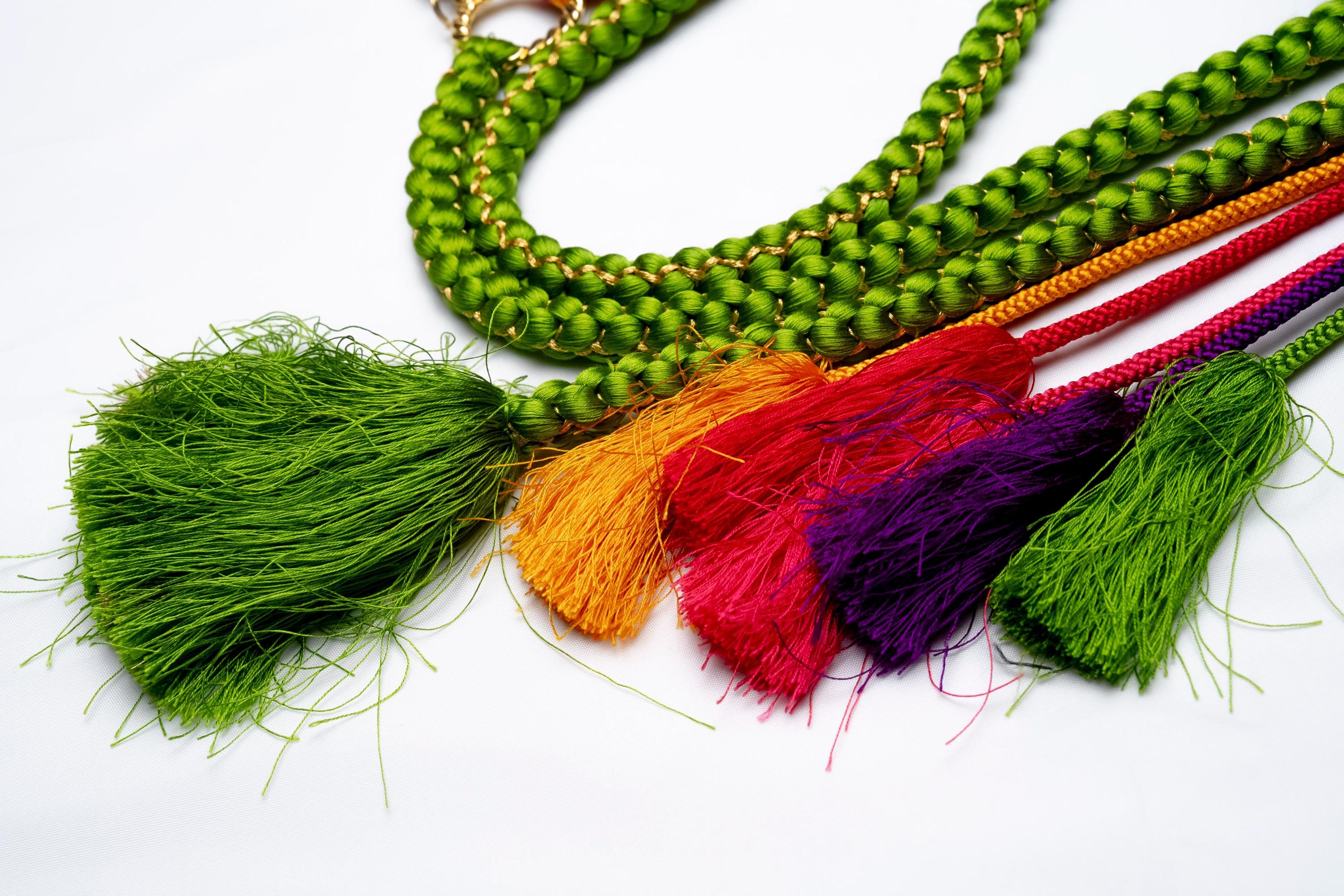 Obijime is one of the essentials in wearing women's Kimonos. Obijime is a fastener string used to hold Kimono Obi in place by tying over it. It's also called Obijime cord.