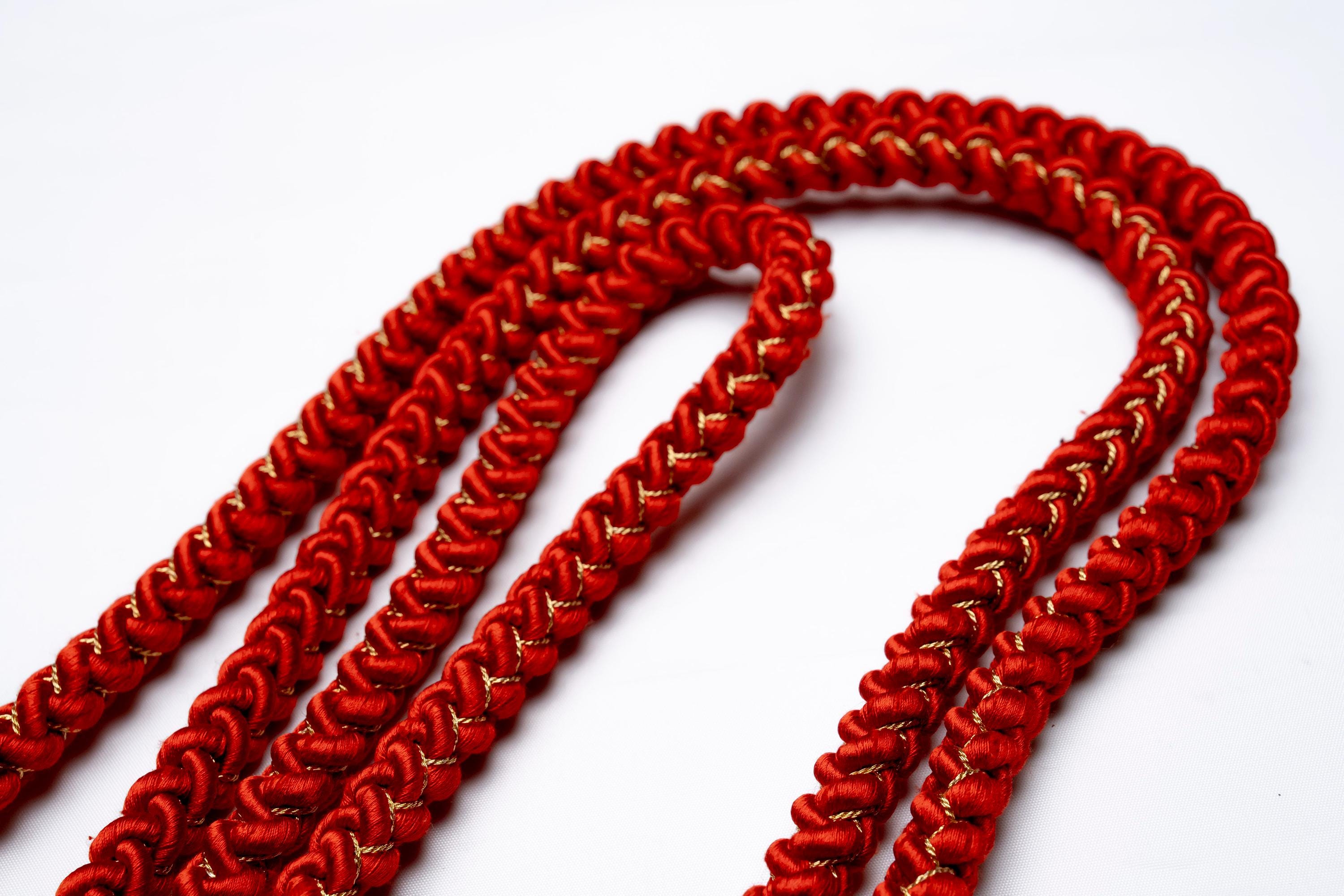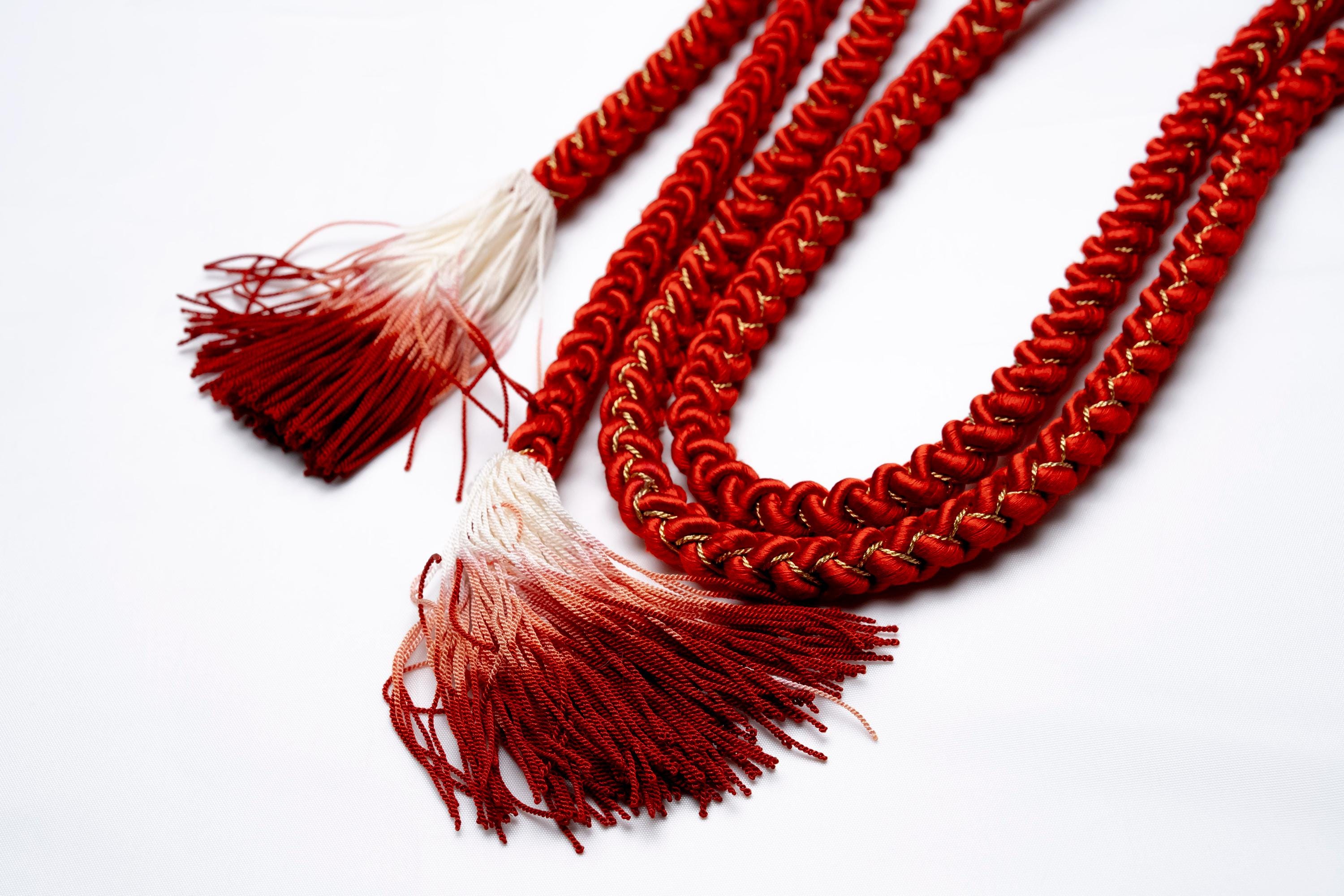 Obijime is one of the essentials in wearing women's Kimonos. Obijime is a fastener string used to hold Kimono Obi in place by tying over it. It's also called Obijime cord. Obijime can be found in different widths and lengths. In general, they are about 1 cm thick and are about 150 cm in length.