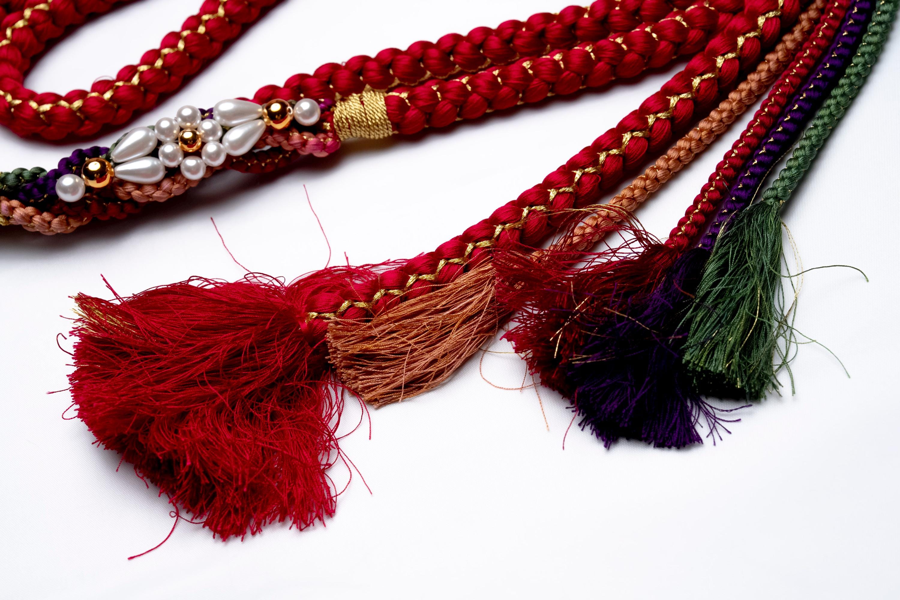 Obijime is one of the essentials in wearing women's Kimonos. Obijime is a fastener string used to hold Kimono Obi in place by tying over it. It's also called Obijime cord.