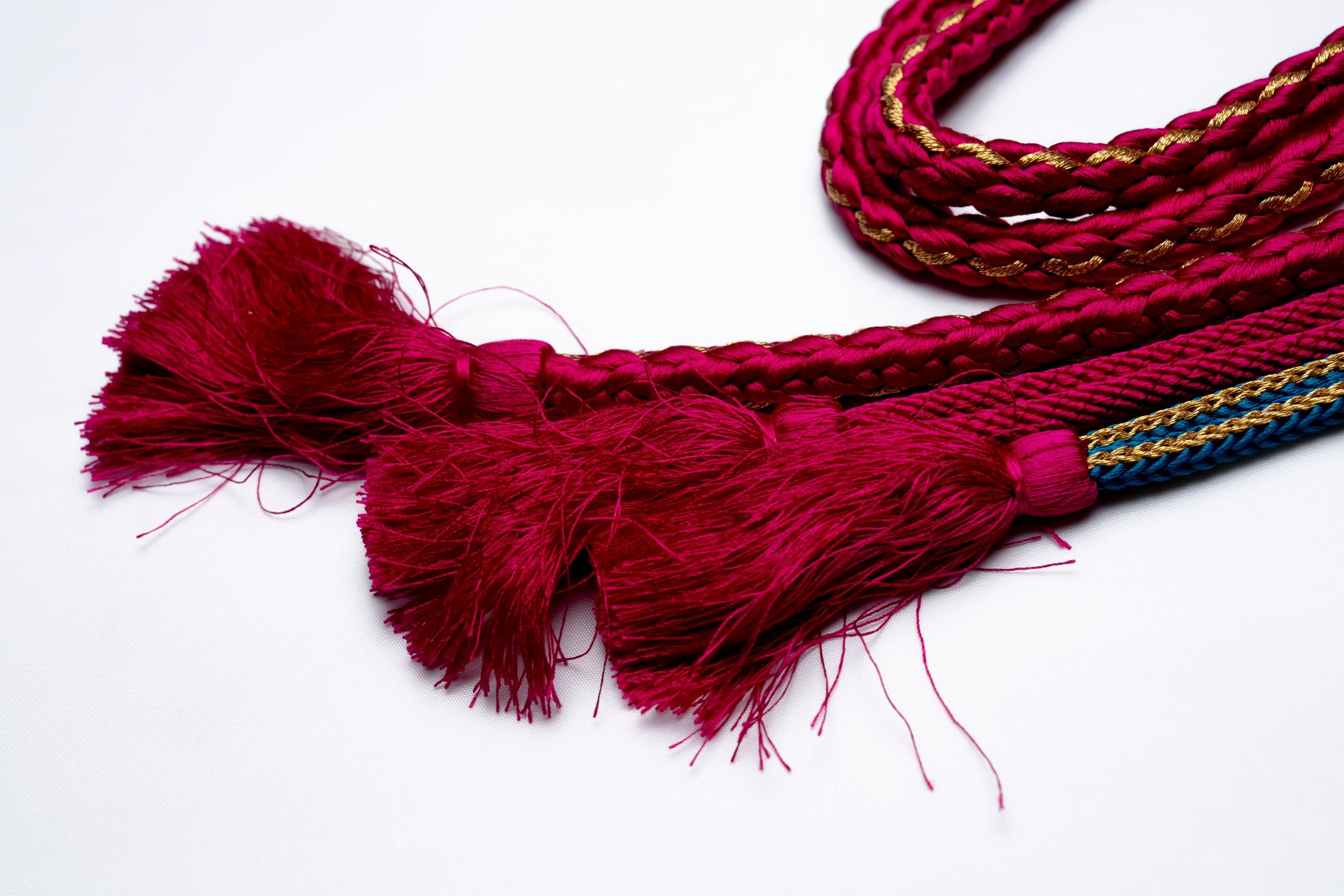 Obijime is one of the essentials in wearing women's Kimonos. Obijime is a fastener string used to hold Kimono Obi in place by tying over it. It's also called Obijime cord.